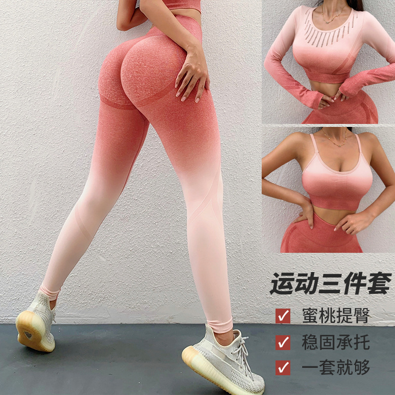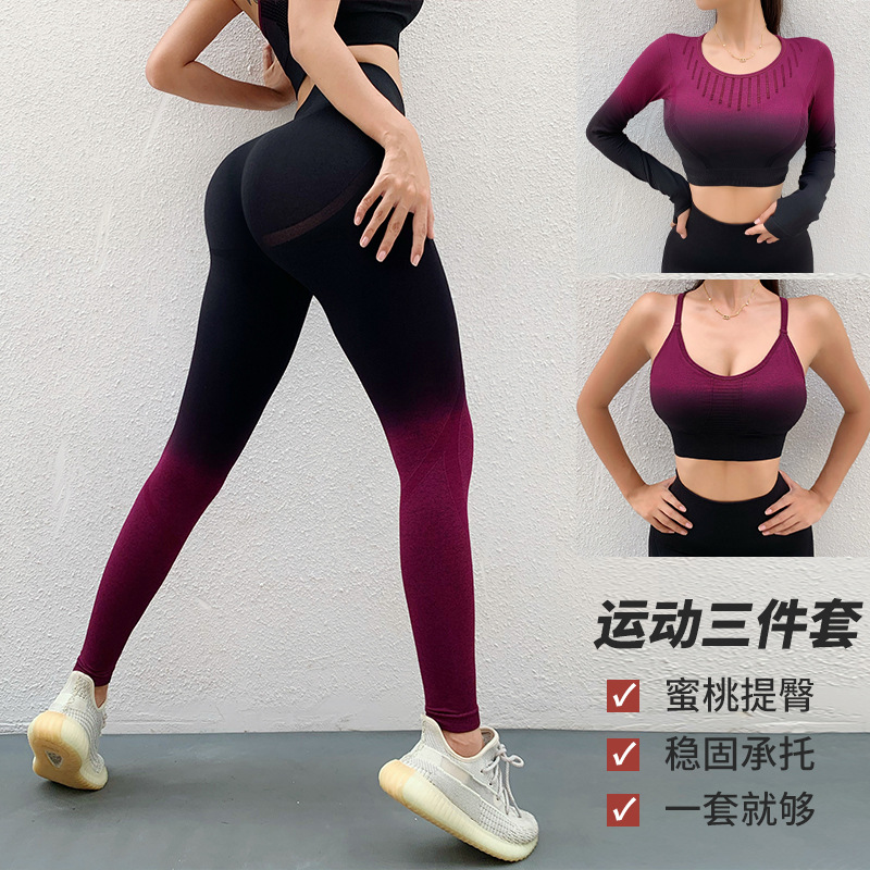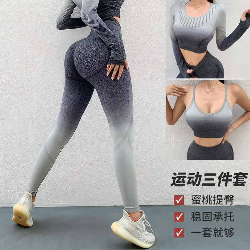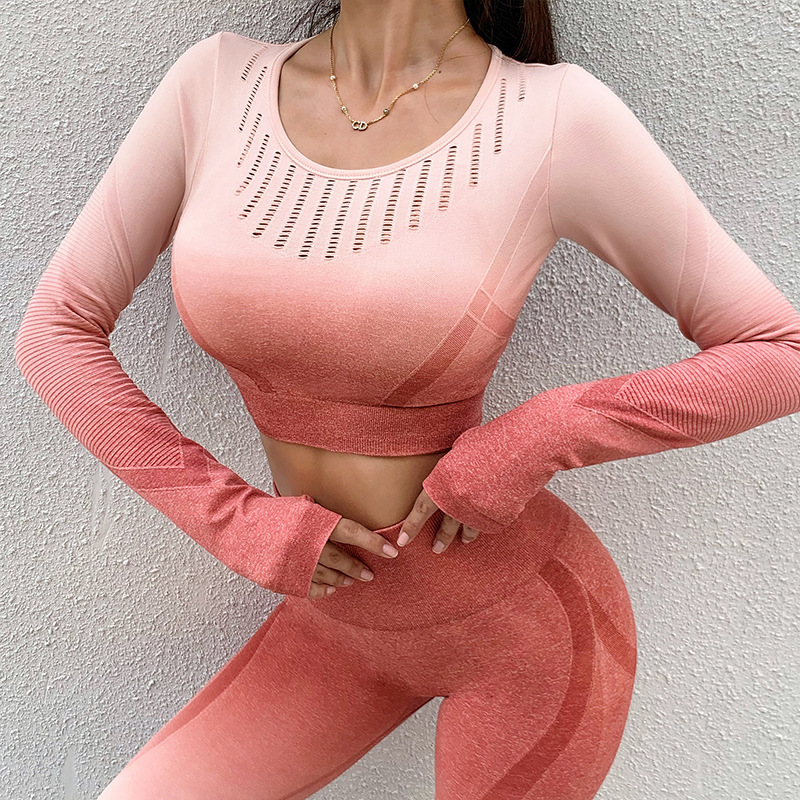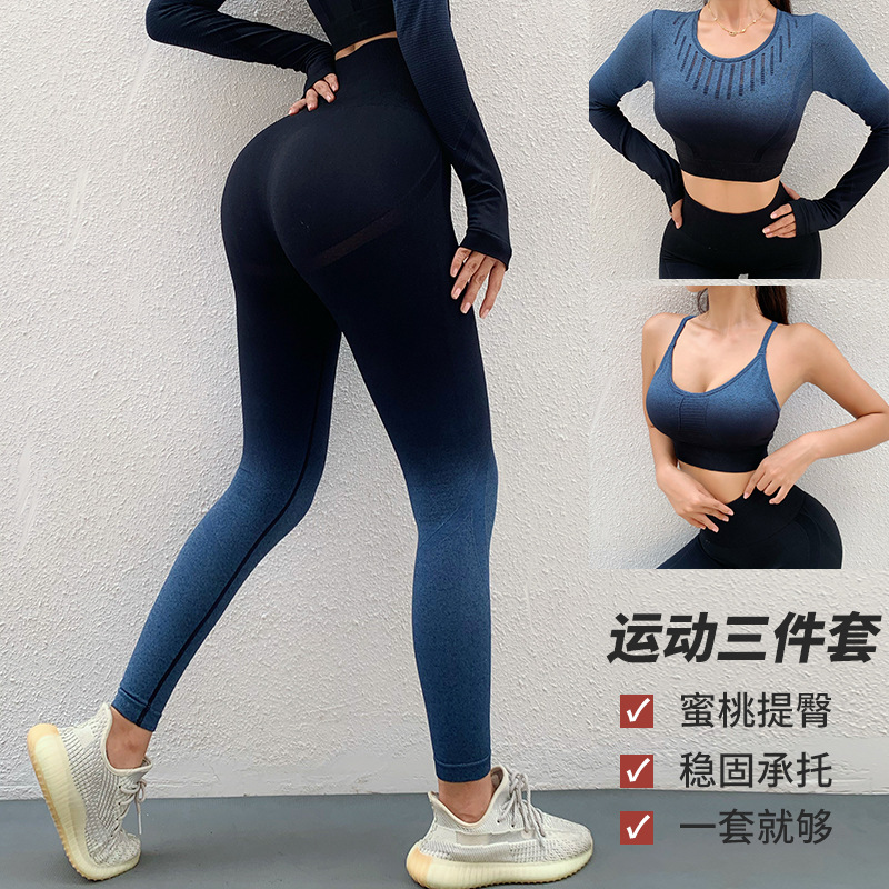 가을 겨울 그라데이션 컬러 긴팔 요가복 세트 여성용 타이트 핏 힙업 러닝 피트니스 운동 그라데이션 피트니스 바디 케어