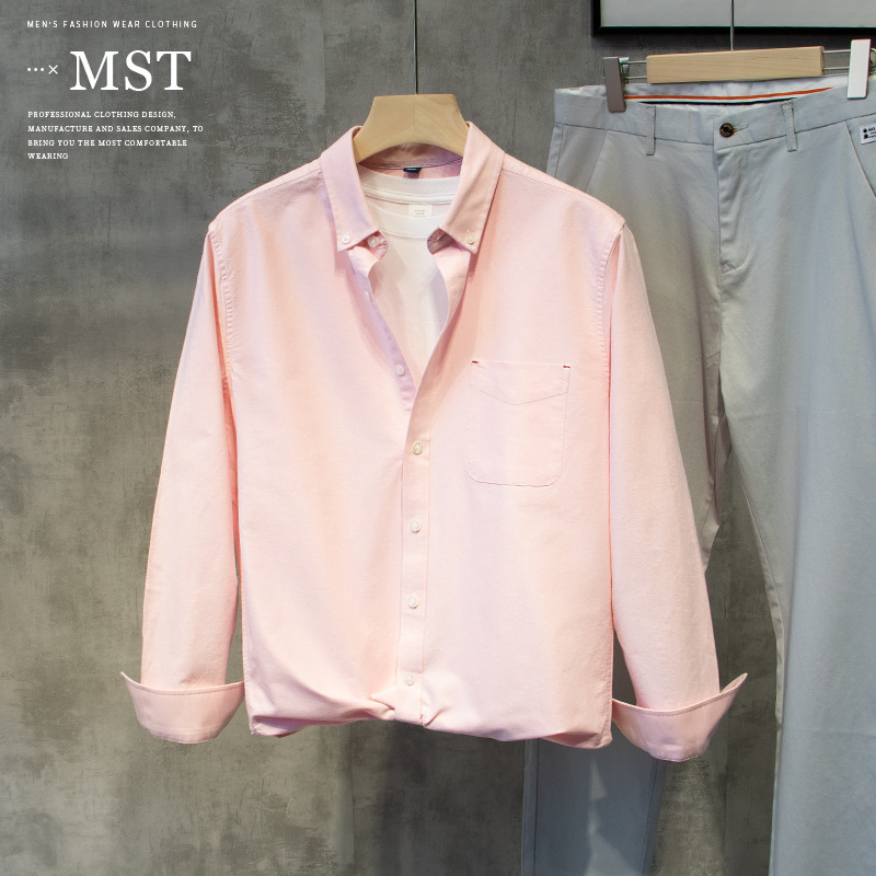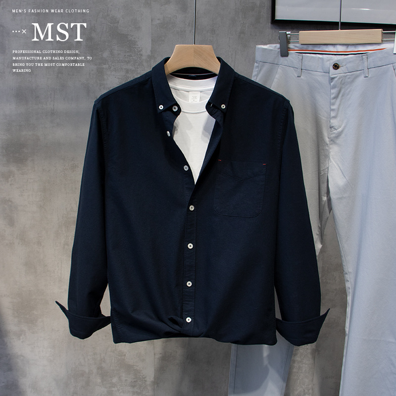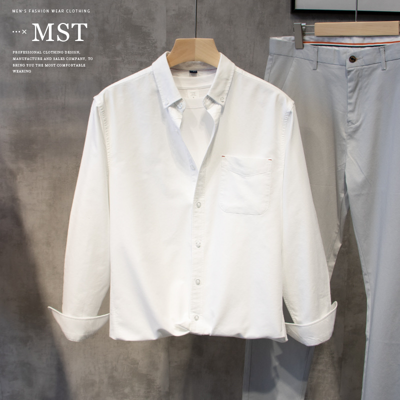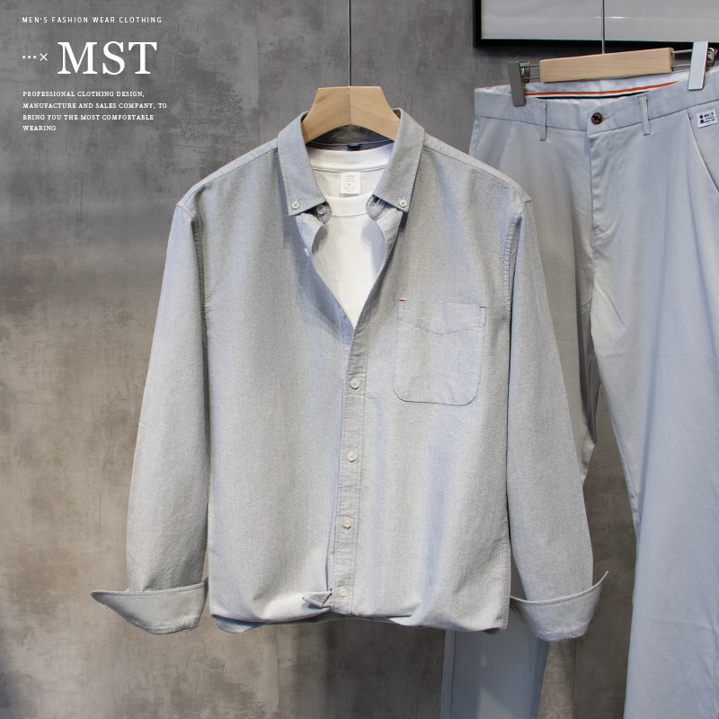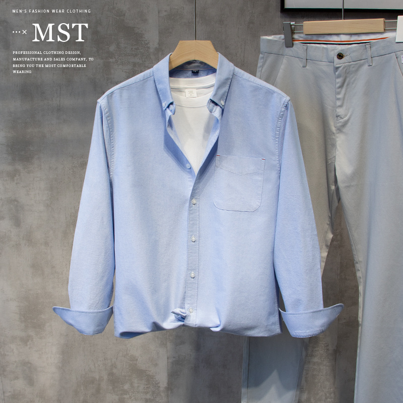 순면 남성 옥스포드 긴팔 셔츠 한국 스타일 캐주얼 청소년 셔츠 로고 추가 트렌디하고 멋짐스토어 가기