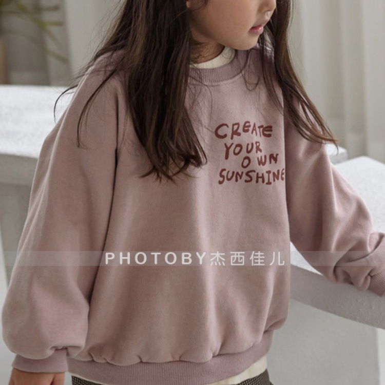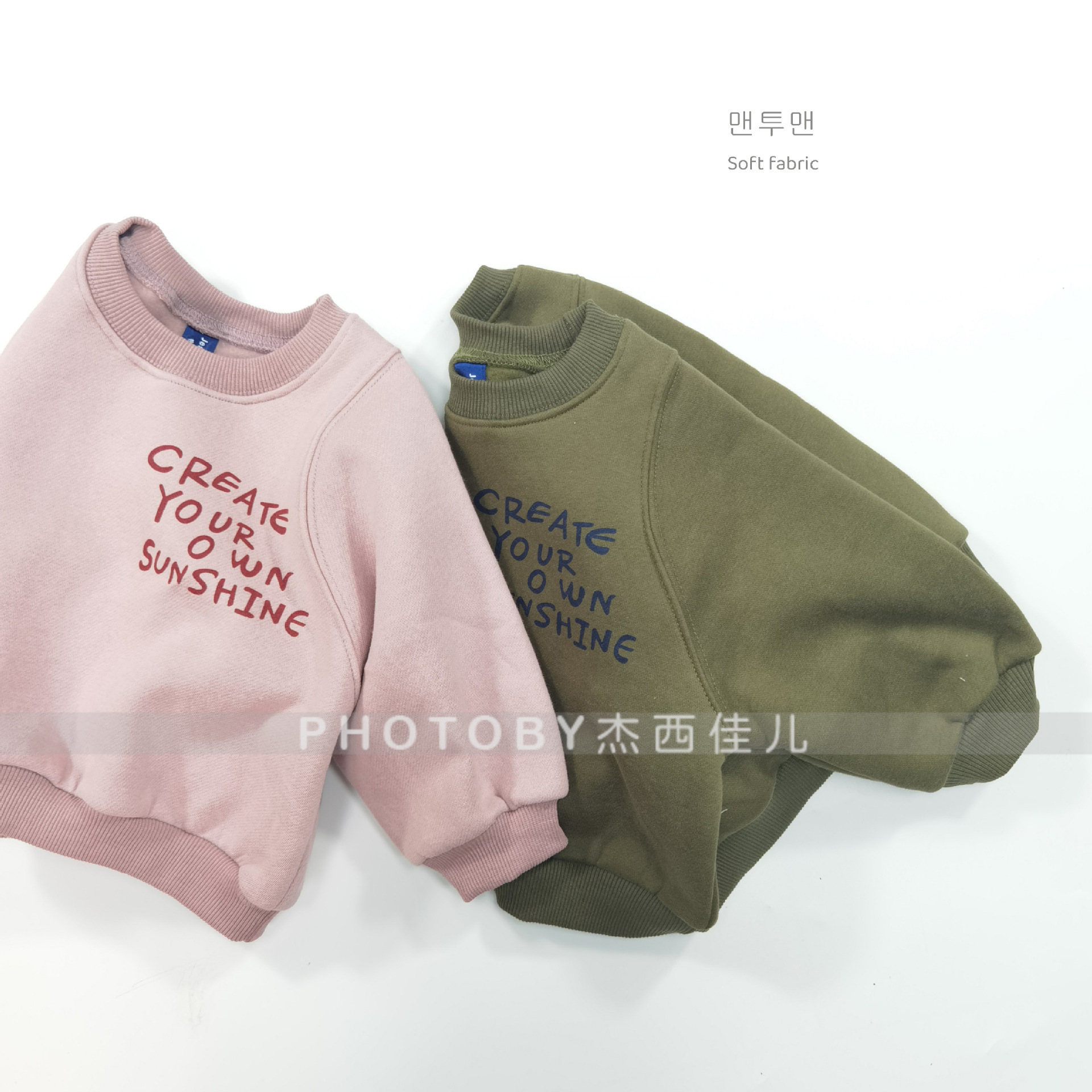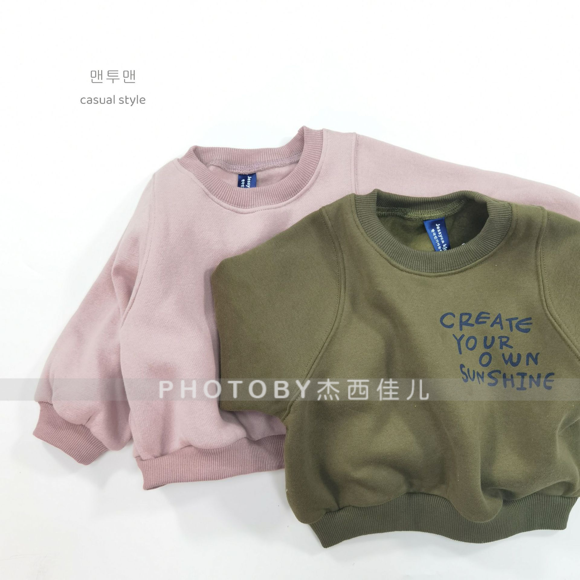 어린이 한국식 겨울 의류 아기 소년과 소녀를 위한 새로운 T-스타일 느슨한 캐주얼 프린트 편지 긴팔 양털 운동복