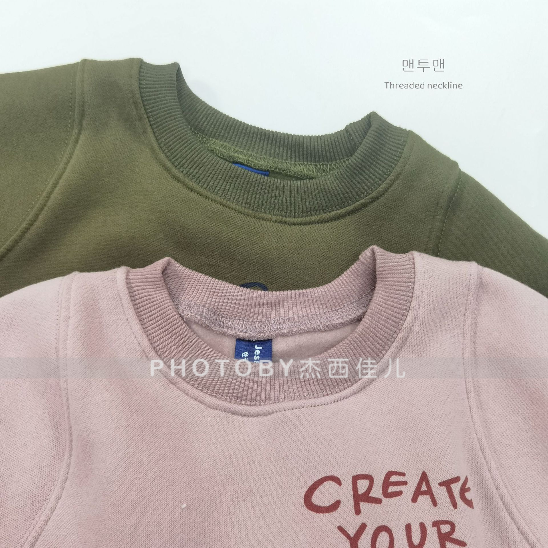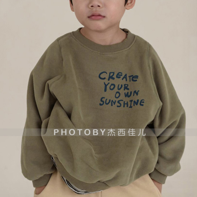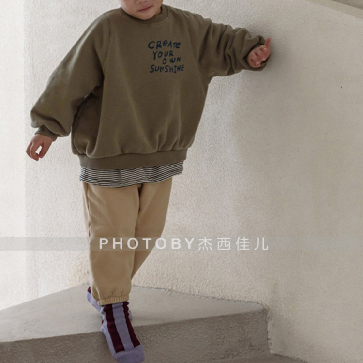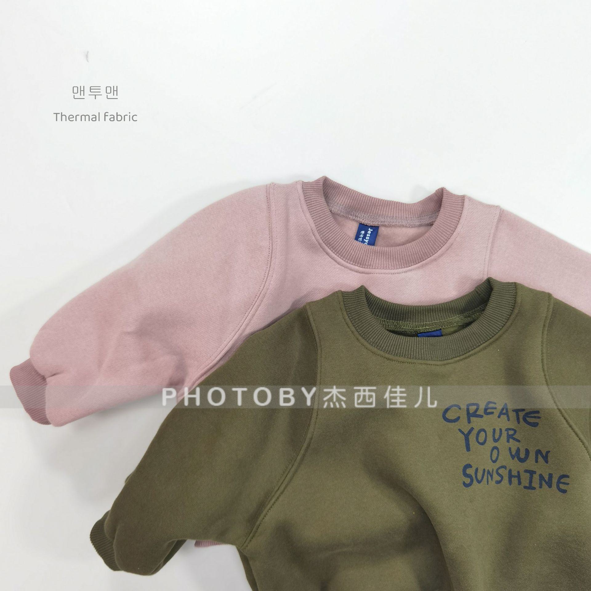 어린이 한국식 겨울 의류 아기 소년과 소녀를 위한 새로운 T-스타일 느슨한 캐주얼 프린트 편지 긴팔 양털 운동복