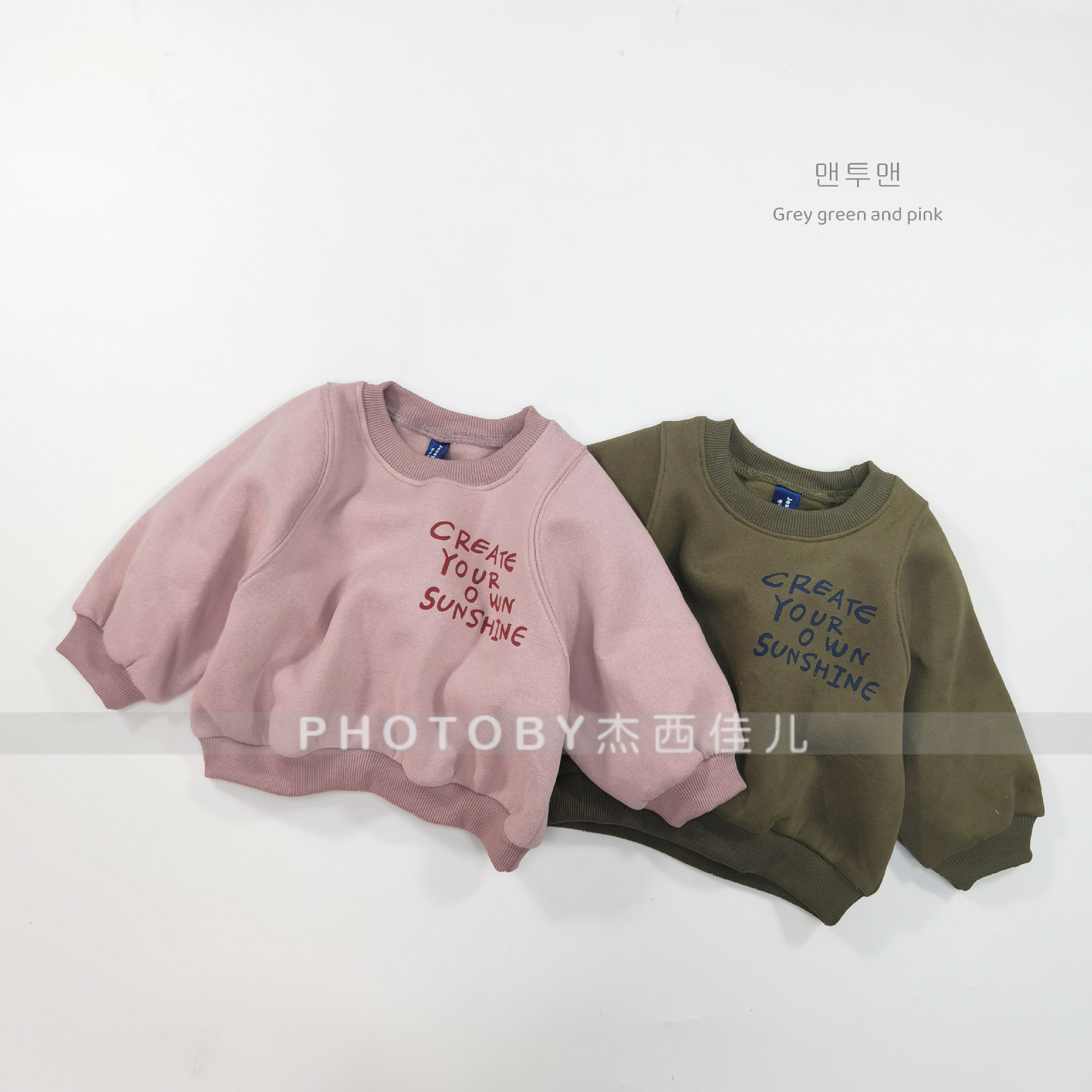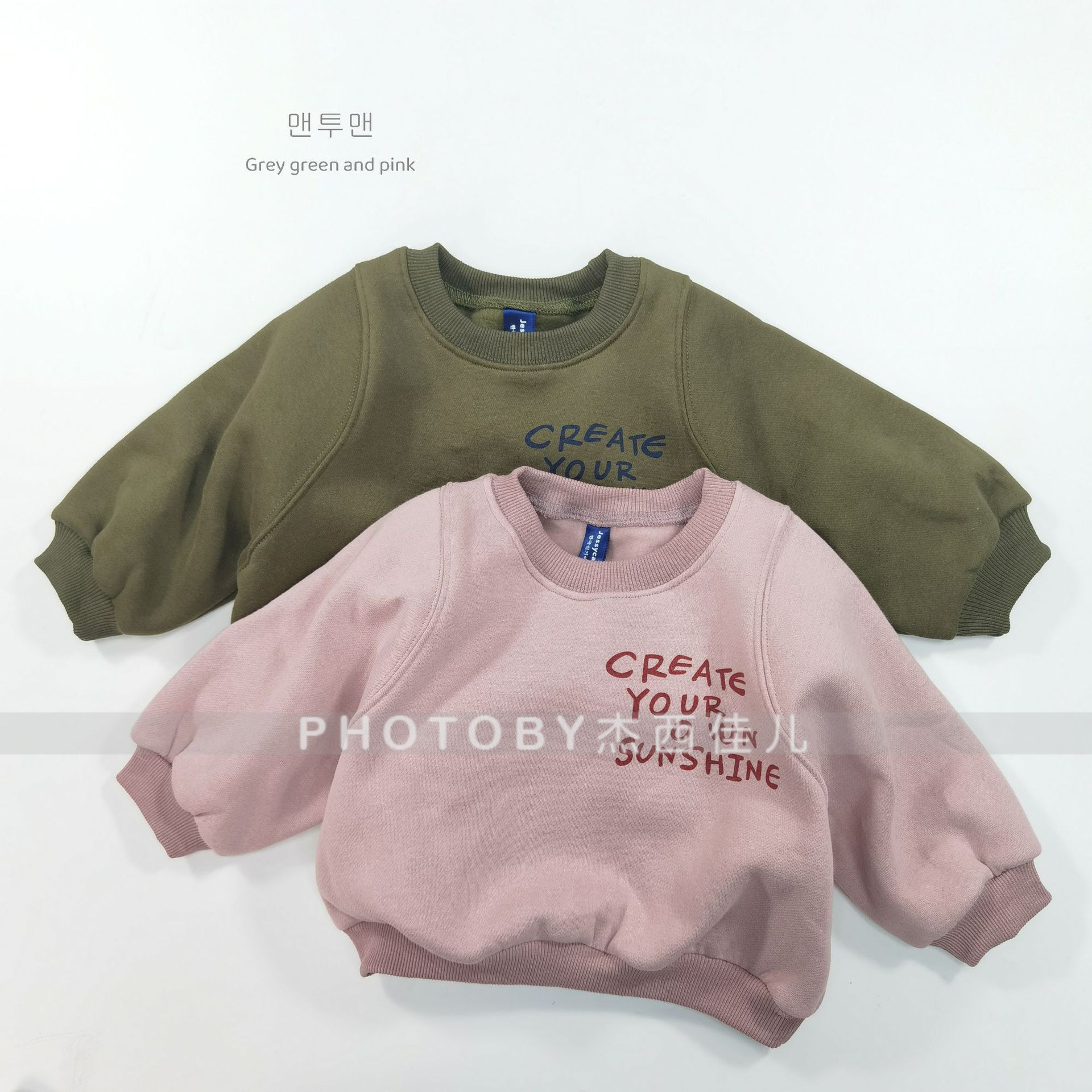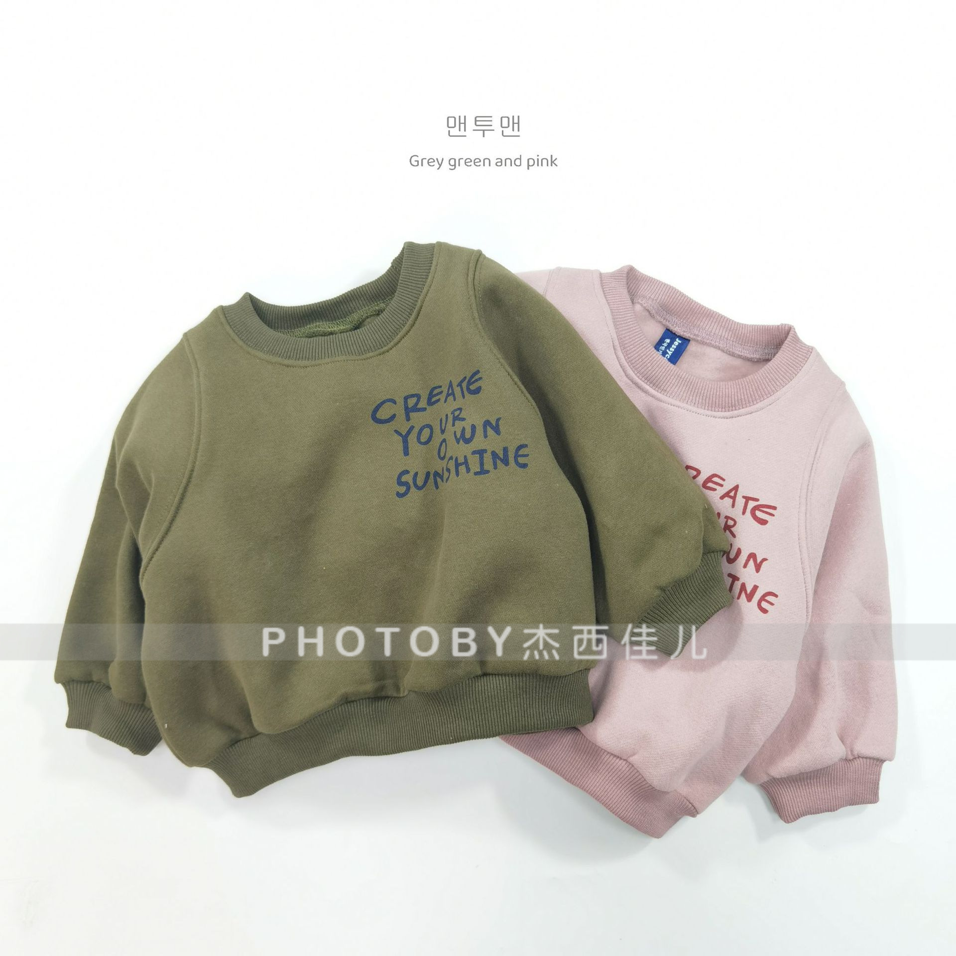 어린이 한국식 겨울 의류 아기 소년과 소녀를 위한 새로운 T-스타일 느슨한 캐주얼 프린트 편지 긴팔 양털 운동복스토어 가기