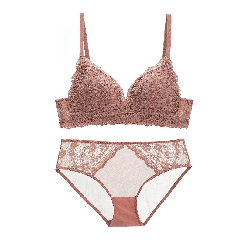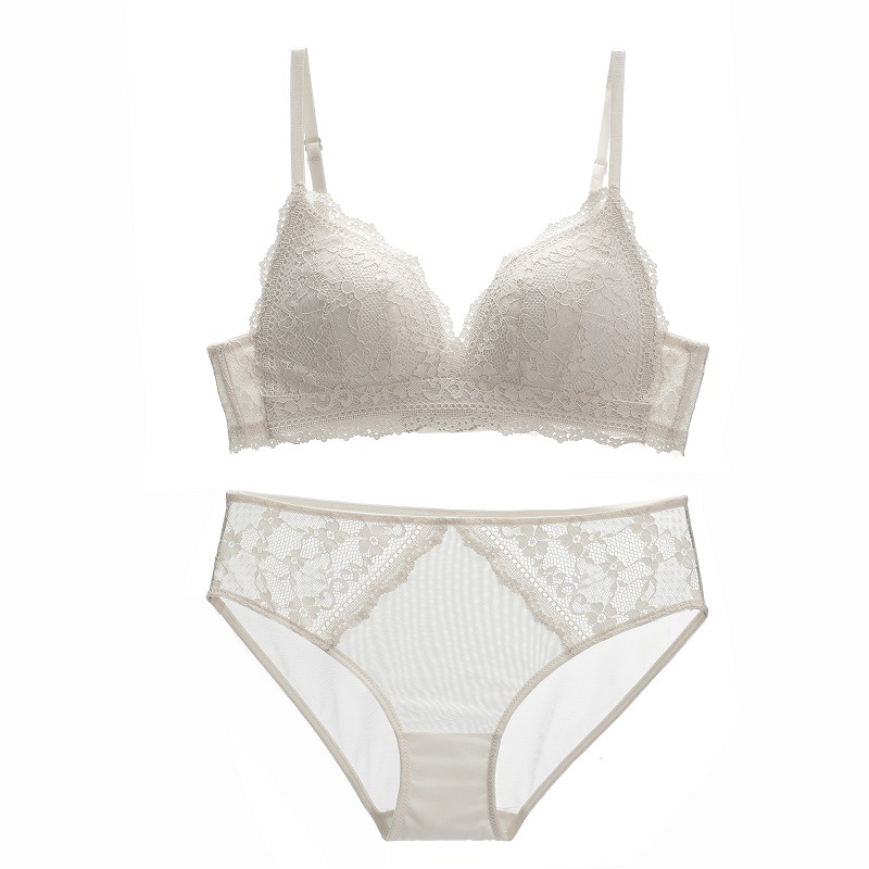 새로운 프랑스 스타일 레이스 얇은 브래지어 삼각형 컵 아니 스틸 링 브래지어 푸시 업 속옷 여성의 작은 가슴 섹시 편안한 세트