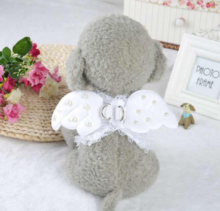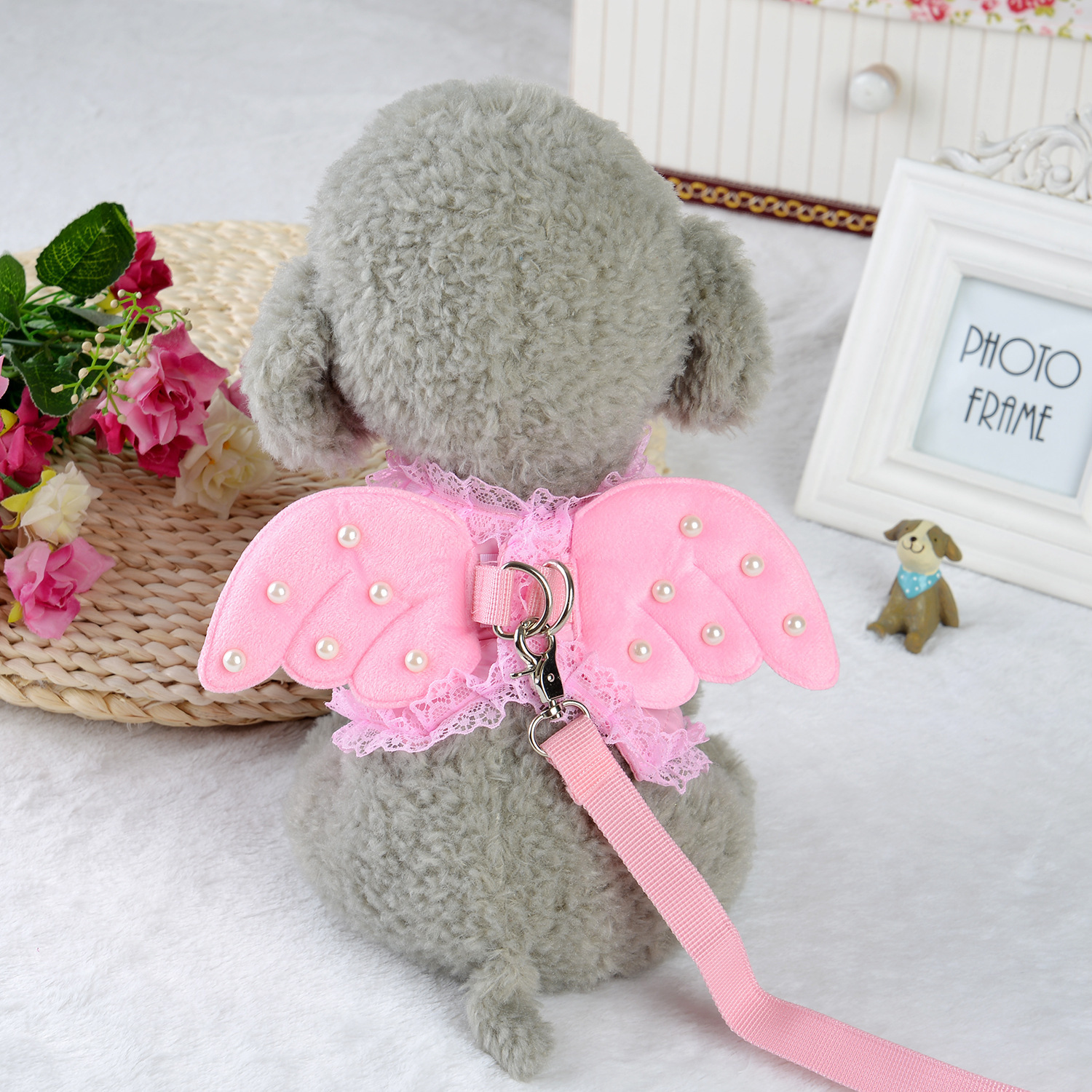 천사 날개 진주 코르셋 애완 동물 가죽 끈 개 가슴 끈 가죽 끈 개 체인 레이스 가장자리스토어 가기