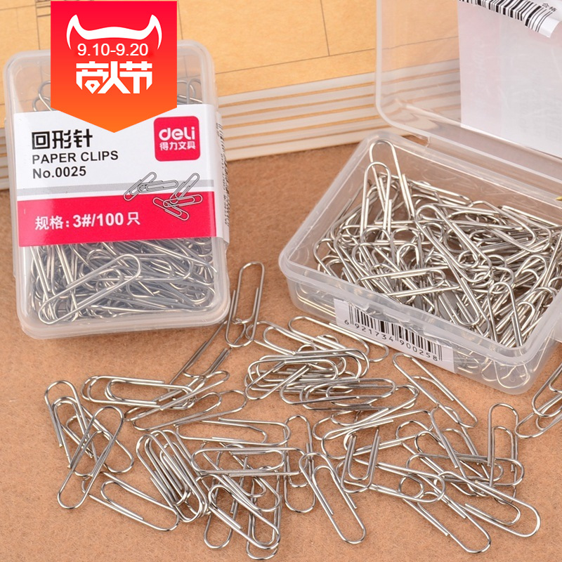得力0025曲别针装订用品 银色别针100个装 29mm回形针