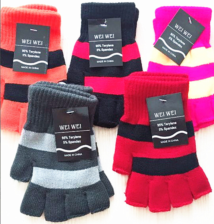 • 숙녀 스트라이프 반 손가락 장갑 색상 무작위 머리