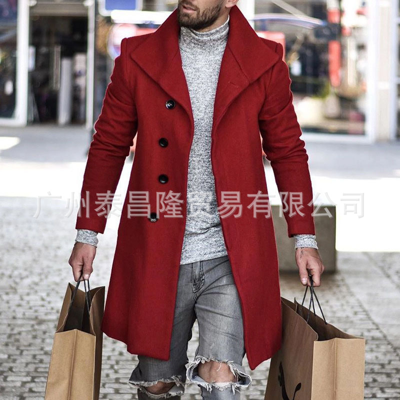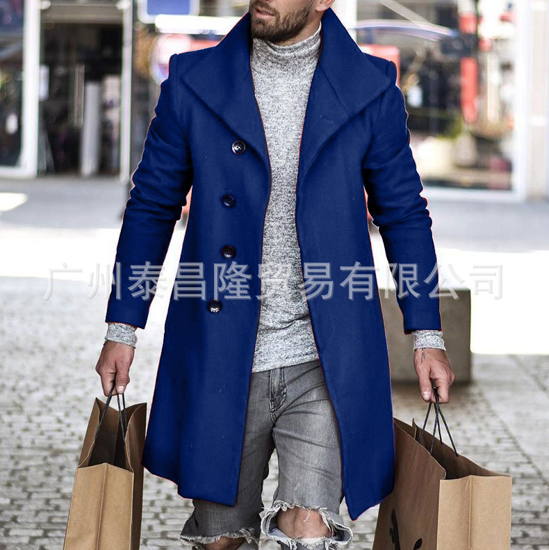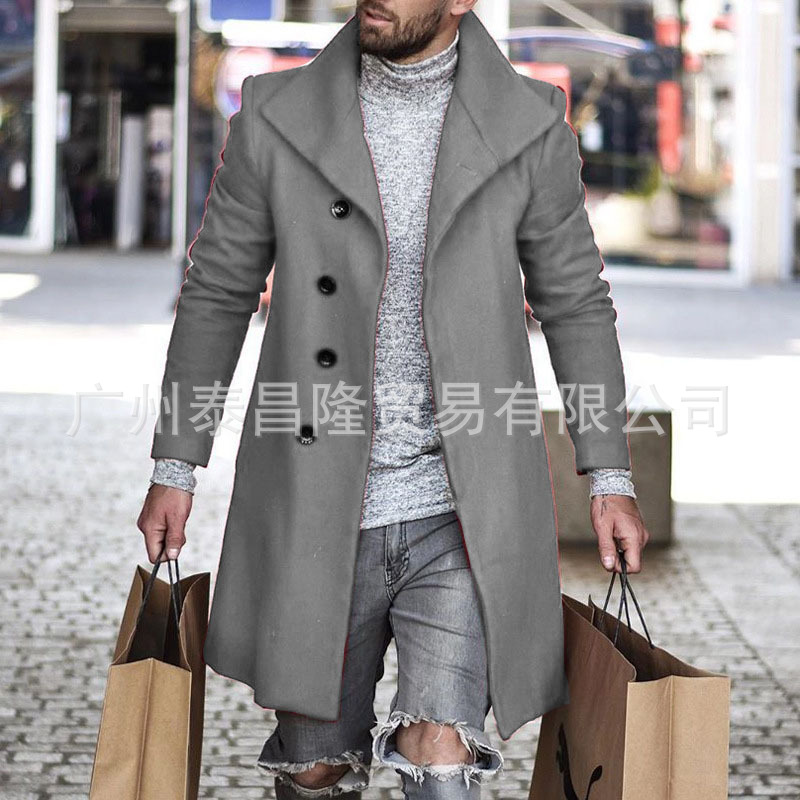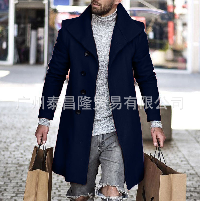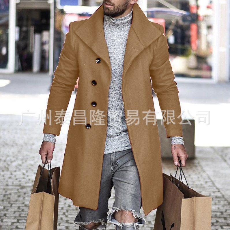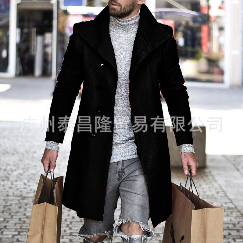 아마존 유럽과 미국 국경 새로운 가을과 겨울 모직 코트 긴 남성 코트 트렌치 코트 모직 큰 옷깃 가슴살