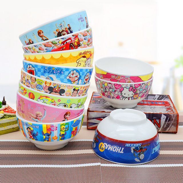 만화 귀여운 밥 그릇 가정 먹는 그릇 어린이 작은 수프 그릇 국수 쌀 그릇 창조적 인 학생 드롭 방지 멜라민 그릇