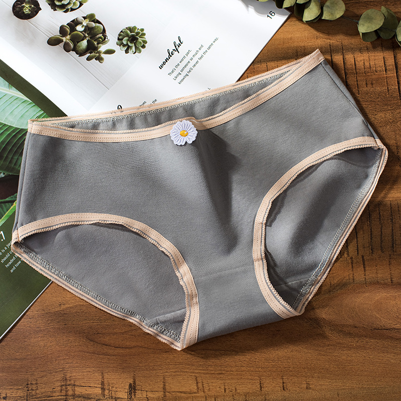 여자 데이지 면 속옷 통기성 반바지 심플 허리 얇은 면 국화 브리프 여성 도매