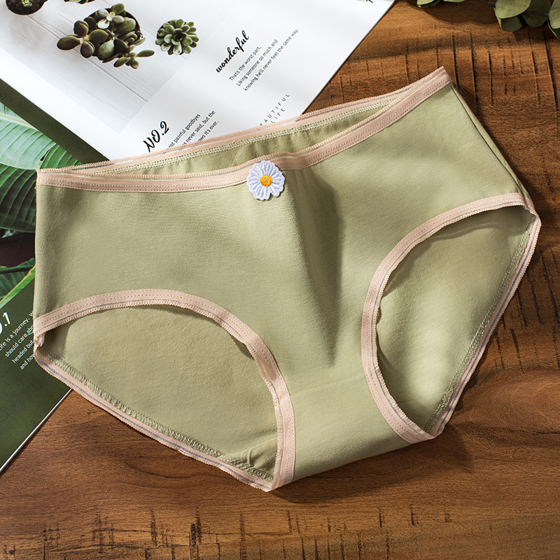 여자 데이지 면 속옷 통기성 반바지 심플 허리 얇은 면 국화 브리프 여성 도매스토어 가기