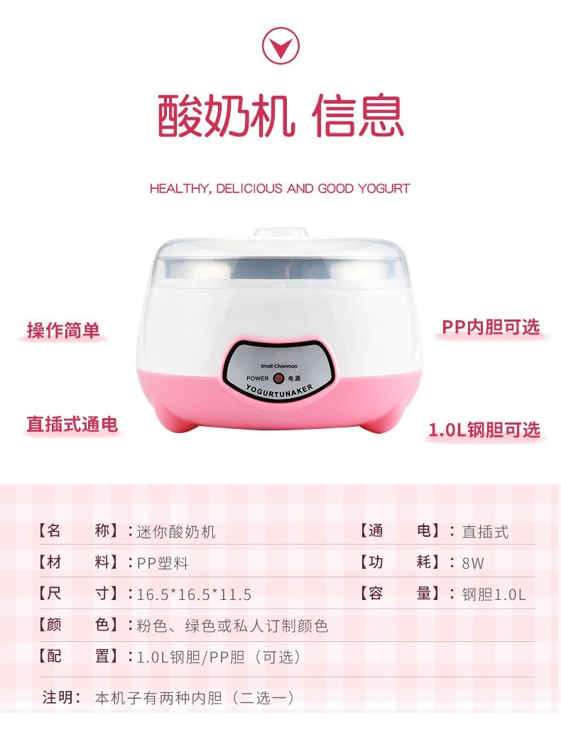 此款:钢胆迷你酸奶机、塑料胆请按要求选择内胆。