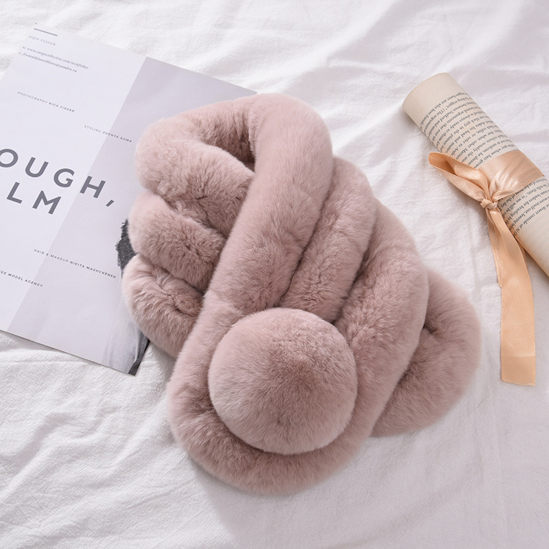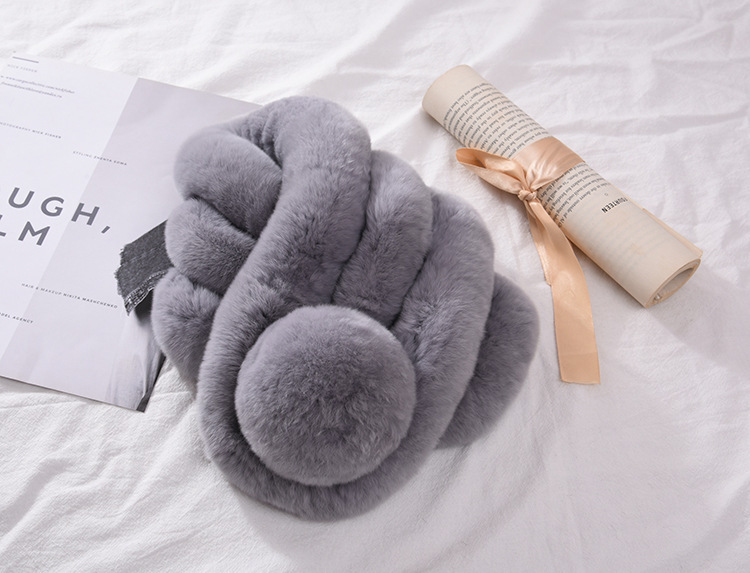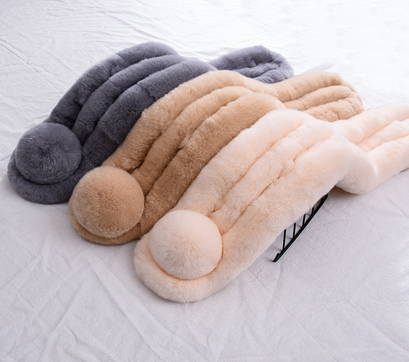 새로운 모조 렉스 토끼 모피 플러시 스카프 여성용 겨울 3 튜브 스카프 따뜻한 두꺼운 모든 매치 헤어 볼 여성용 어머니 스카프