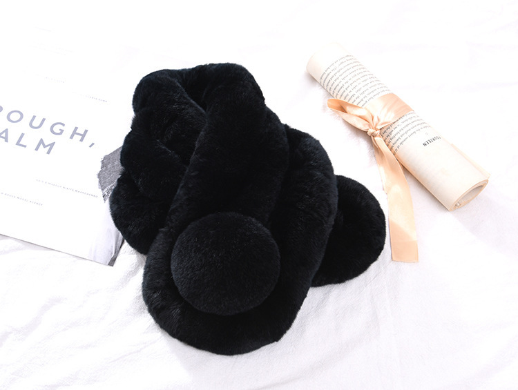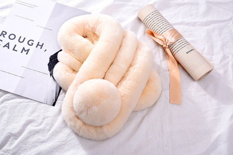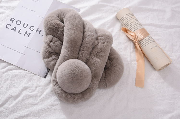 2020新款仿獭兔毛毛绒围巾女冬季三管围脖保暖加厚百搭毛球女大妈