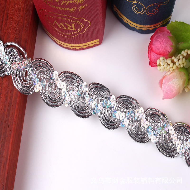 义乌辅料新款批发波浪花边 亮片花边 精致服装辅料彩色小弯花边
