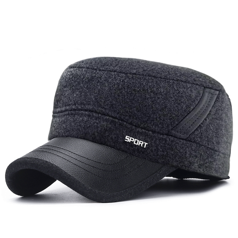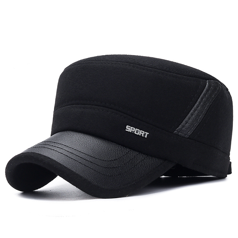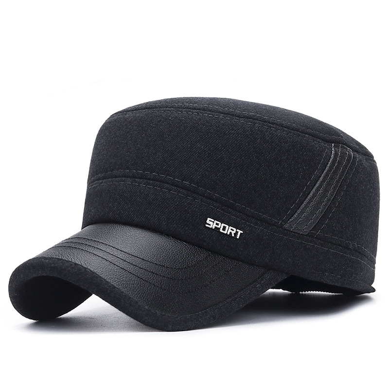 가을과 겨울 두꺼운 방한 귀 보호 코튼 캡 중년 및 노인 남성 아빠 사이클링 따뜻한 플랫 탑 모자 겨울