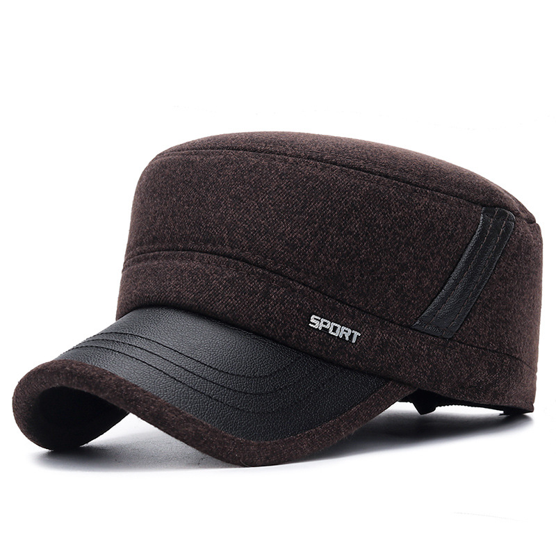 가을과 겨울 두꺼운 방한 귀 보호 코튼 캡 중년 및 노인 남성 아빠 사이클링 따뜻한 플랫 탑 모자 겨울스토어 가기