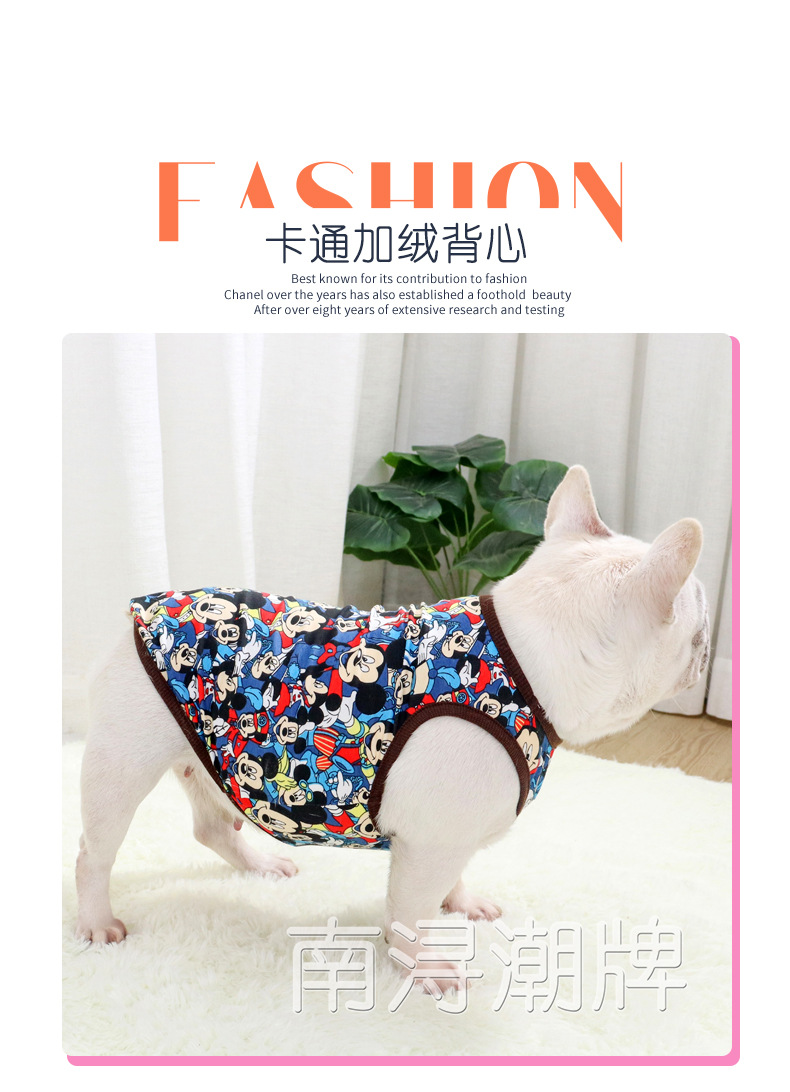 Fadou 가을과 겨울 기모 조끼 개 옷 버그 뚱뚱한 개 불독 겨울 따뜻한 면 만화스토어 가기