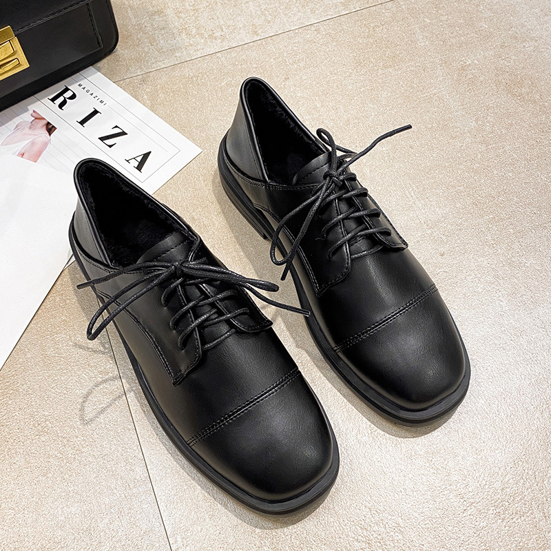 여성용 로퍼 2024 신상 플랫 블랙 레트로 스타일 영국풍 가죽 신발, 벨벳 안감, 작업용, 다용도