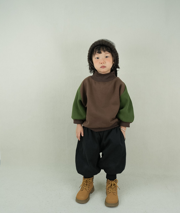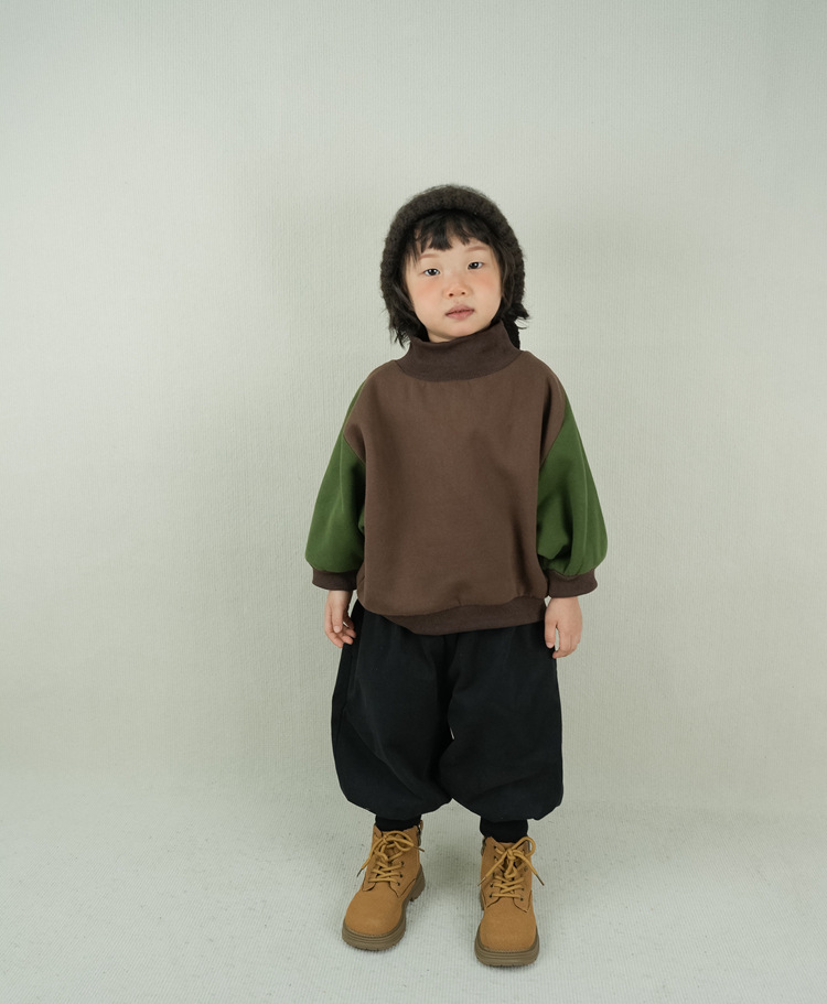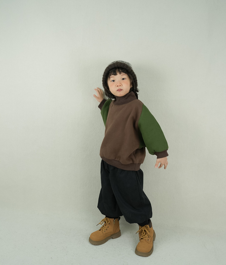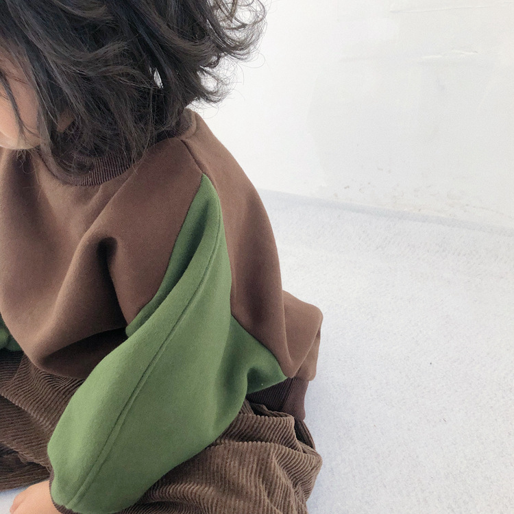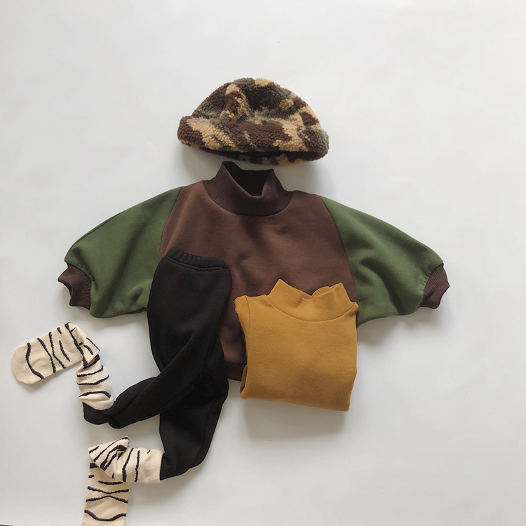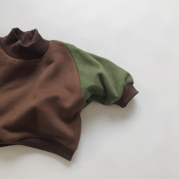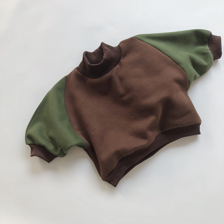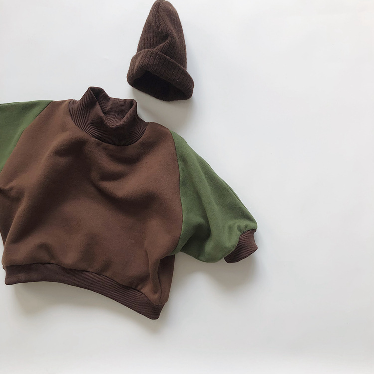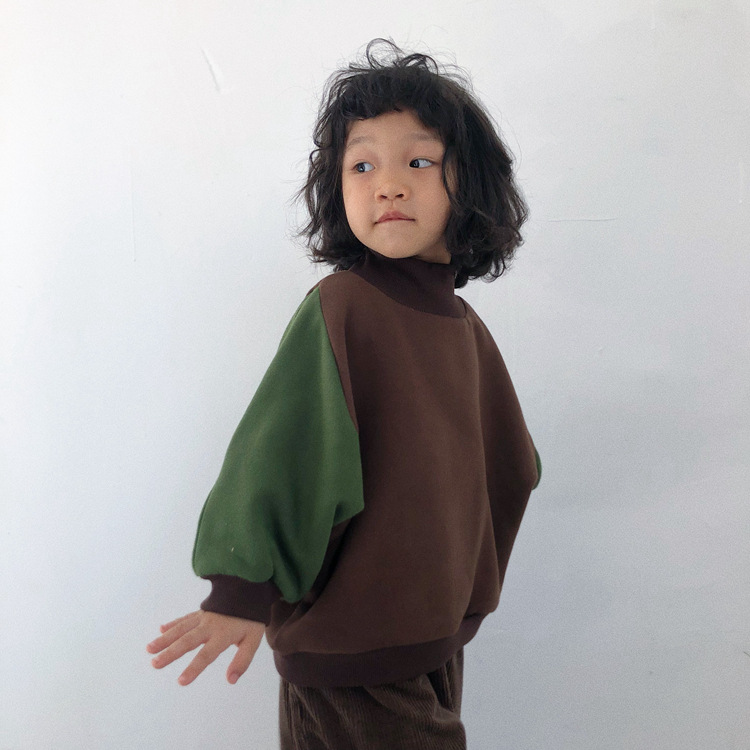 한국 아동복 가을과 겨울 어린이 세미 하이 칼라 스웨터 소년과 소녀 기모 풀오버 아기 양털 승무원 넥 탑