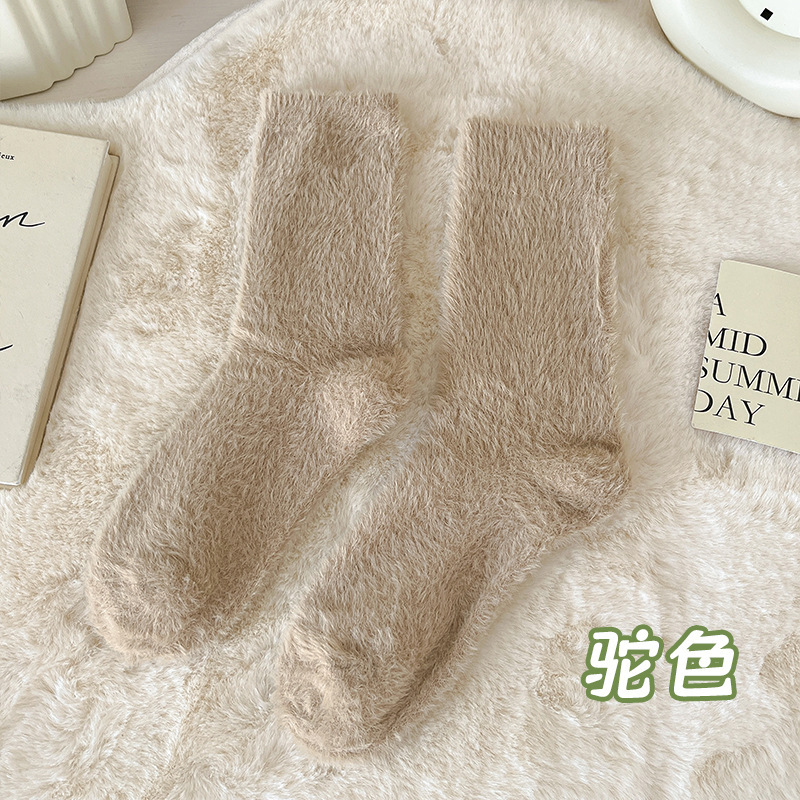 22 겨울 새 양말 여자 양말 따뜻한 단색 밍크 벨벳 여자 양말 일본 숙녀 기모 수면 양말 도매스토어 가기