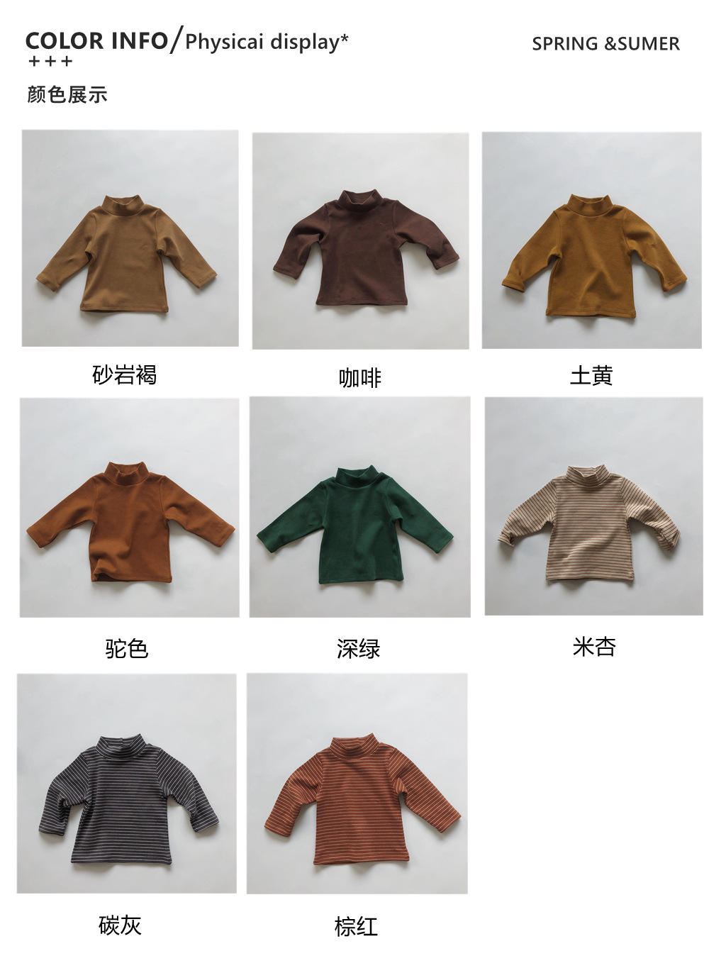 한국 아동 의류 가을과 겨울 새로운 어린이 하이 칼라 풀오버베이스 셔츠 소년과 소녀 샌딩 두꺼운 긴 소매 기본 셔츠
