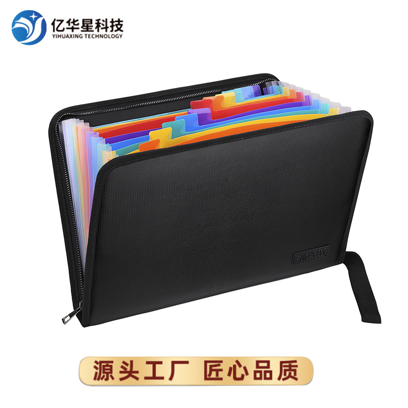 产品功能这款文件袋拥有13层收纳,容量大,可容纳A4纸约40每一个隔层上方都单独设计了索引标签,方便精 内页材质采用700D聚酯,不易断裂或者变形,可随意翻折、 并且这款文件袋可防水防火,外层采用防火硅胶布,绝火耐高温1000摄氏度