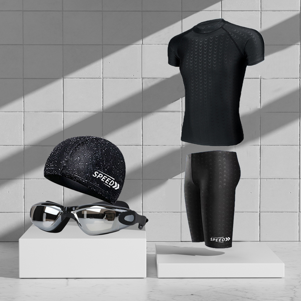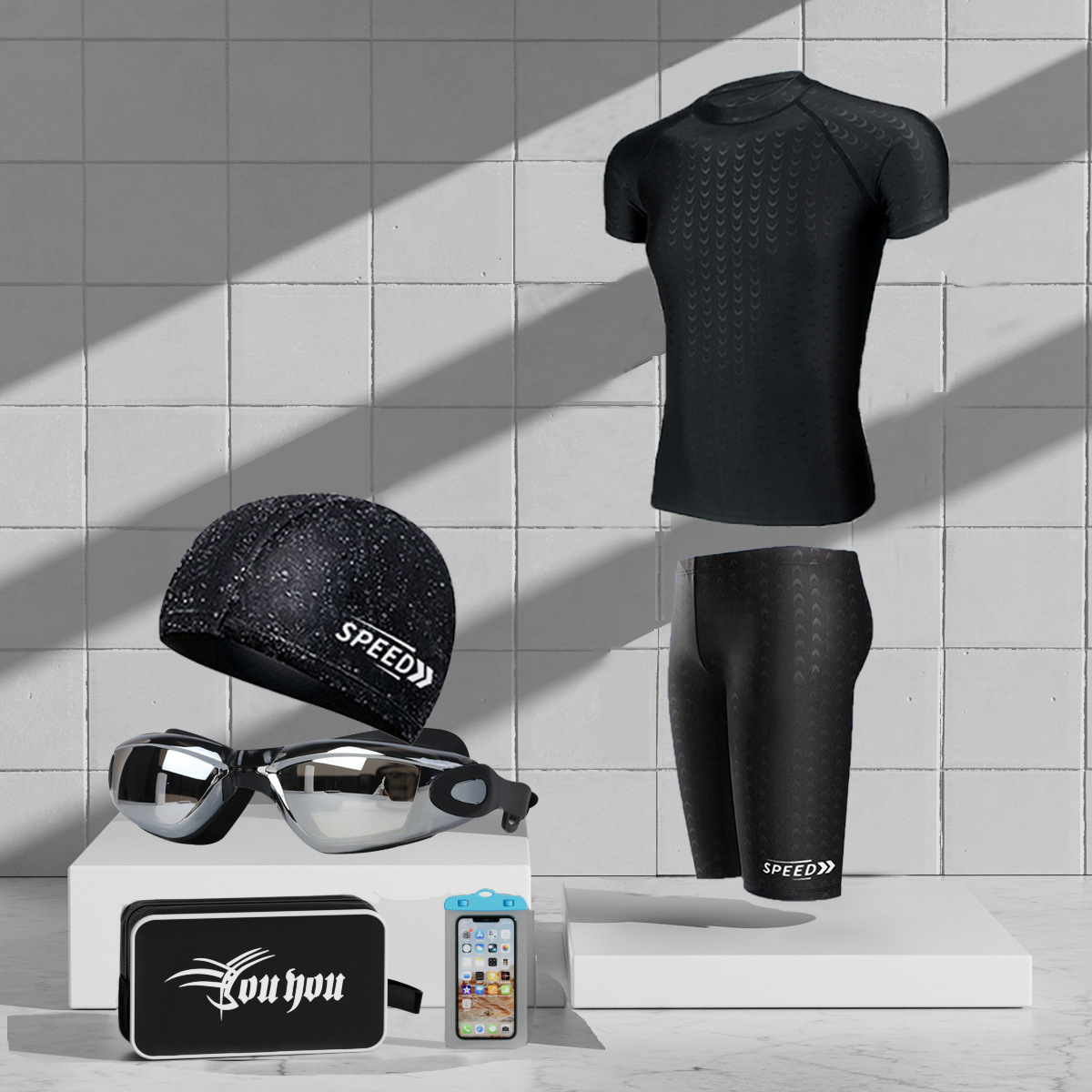 • 수영 트렁크 + 수영 모자 + 휴대폰 가방 + 수영 고글 + 코 클립 귀마개