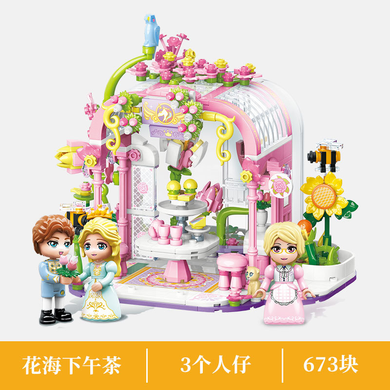 계몽주의 공주 레이아 성 캐리지 소녀 작은 입자 조립 성 빌딩 퍼즐 빌딩 블록 선물 상자 장난감스토어 가기