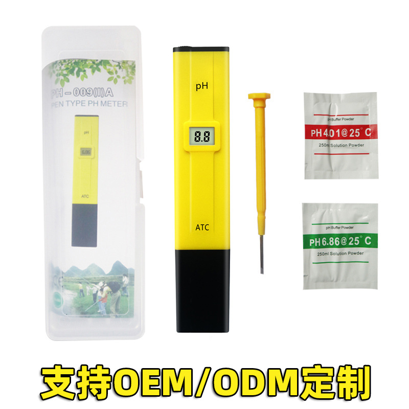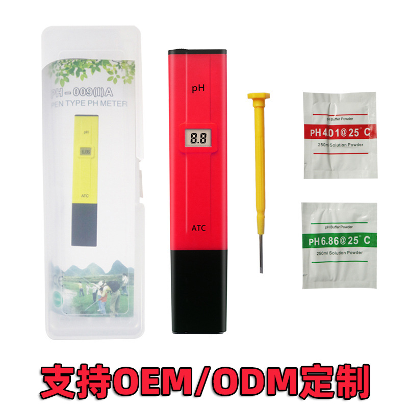 该款PH笔采用双电位校正(粗调+微调),误差范围小,数值更精准,区别于市面其他家产品(单电位器校准)。产品包括:pH检测笔1支(包括电池)、起螺丝刀1支、说明书1份、标准粉1套2包、塑料外包装盒1个。undefined