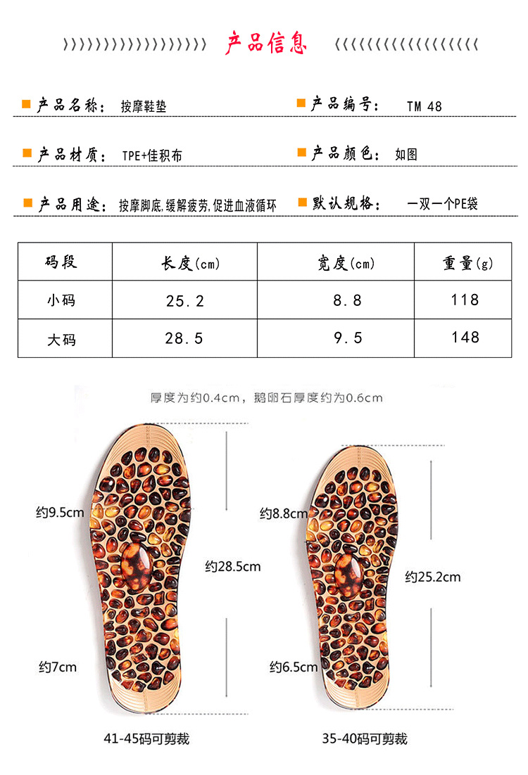 피로 해소를위한 TPE 조약돌 마사지 깔창 남성 및 여성용 양면 깔창 족저 감압 깔창스토어 가기