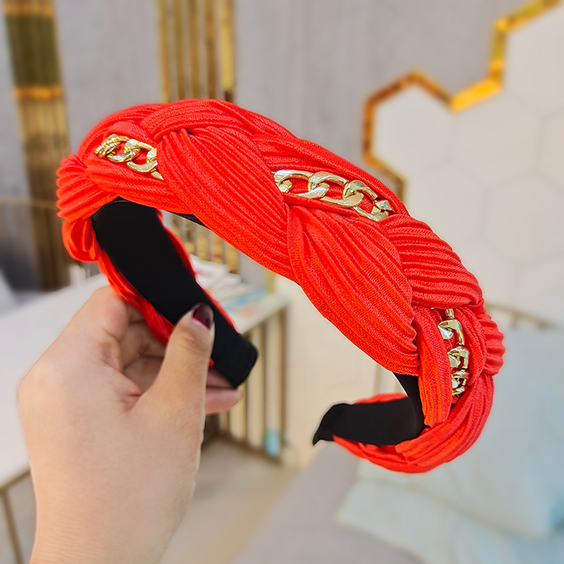 • 큰 빨간 주름 트위스트 체인 브레이드 헤어 밴드