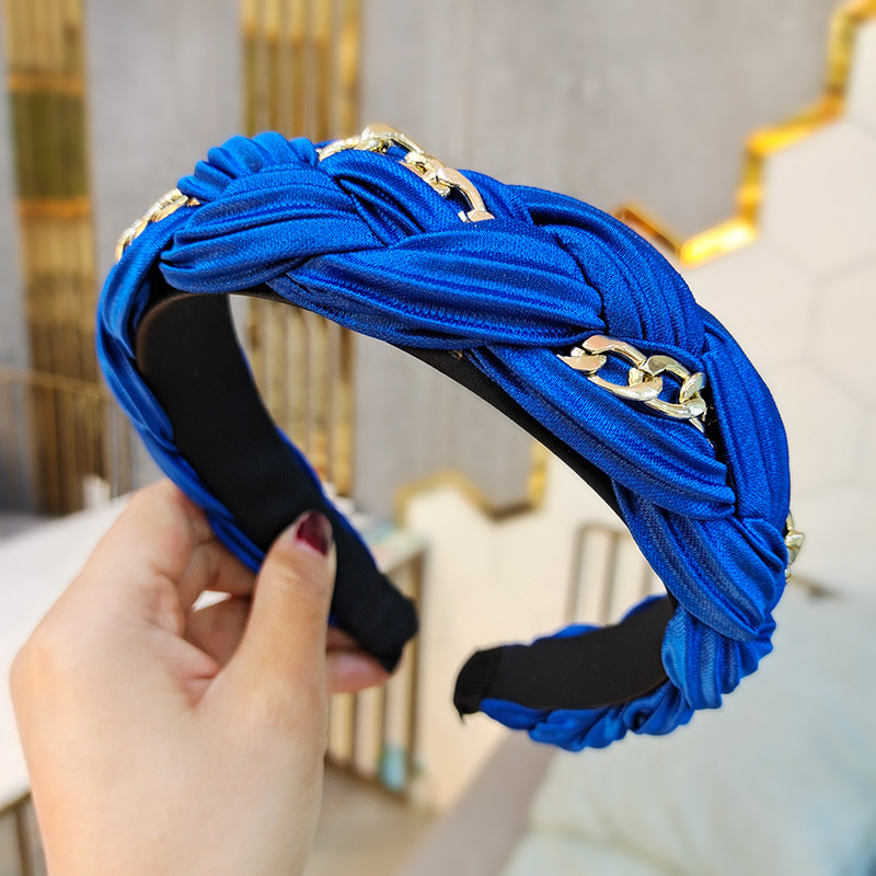 • 로얄 블루 주름 트위스트 체인 브레이드 머리띠