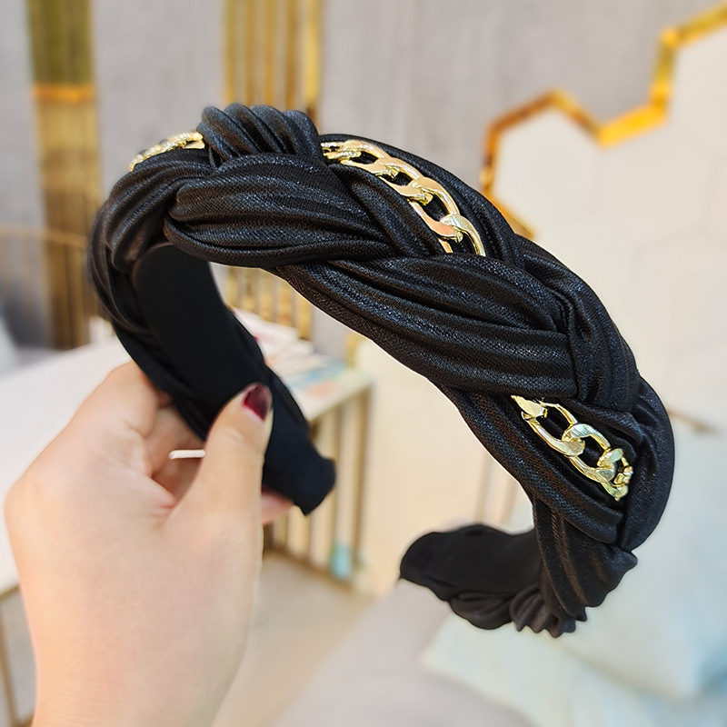 • 블랙 플리츠 트위스트 체인 브레이드 머리띠