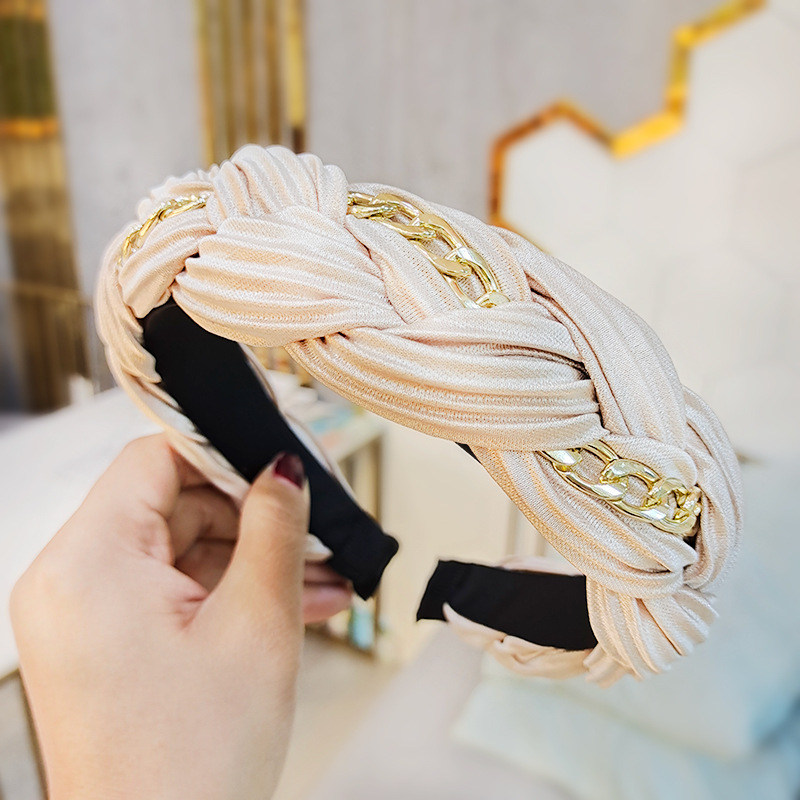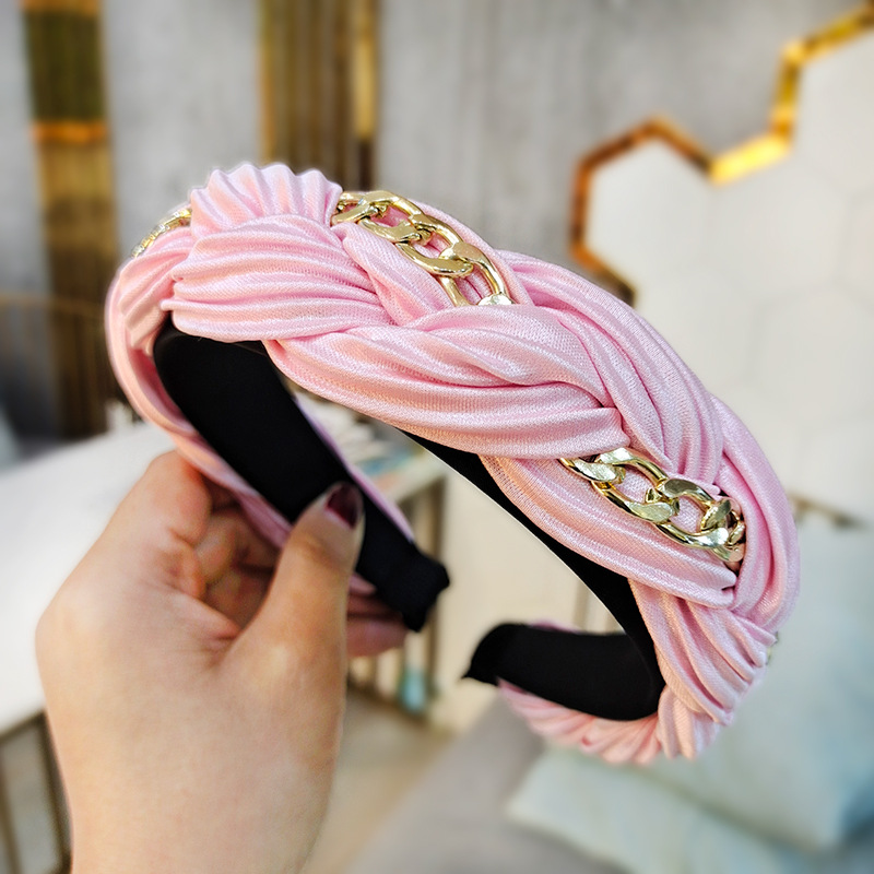 • 창백한 핑크 주름 트위스트 체인 브레이드 헤어 후프