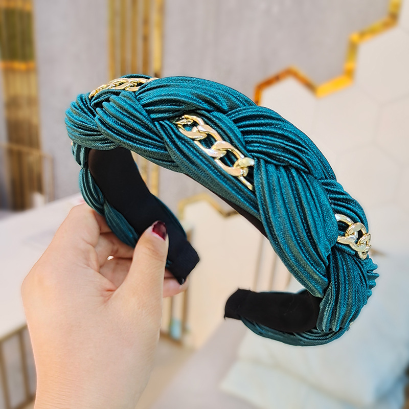 • 다크 그린 주름 트위스트 체인 브레이드 머리띠