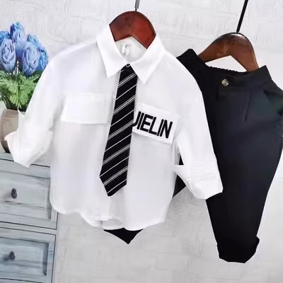 남아용 긴팔 셔츠 2025 가을 겨울 한국 스타일 아동용 패션 플러스 벨벳 타이 어린이 옷 가을