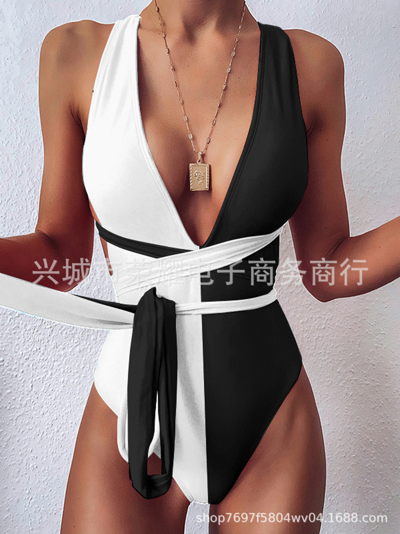 2024 Spot 대형 AliExpress 원피스 수영복 원피스 수영복 여성 유럽과 미국의 스트랩 원피스 비키니스토어 가기