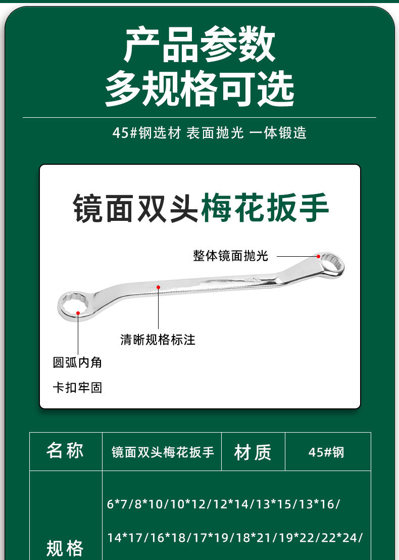 공장 판매 도매 미러 링 렌치 더블 엔드 미러 렌치 아이 렌치 하드웨어 도구스토어 가기