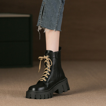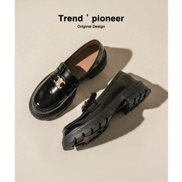 2024 새로운 영국 스타일 로퍼 여성 라운드 발가락 솔리드 컬러 게으른 슬립 온 작은 가죽 신발 두꺼운 굽 두꺼운 밑창 여성 신발