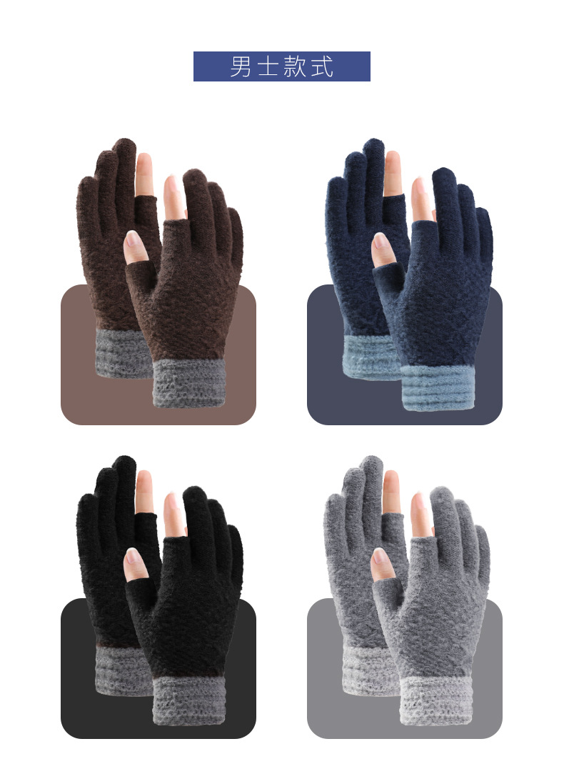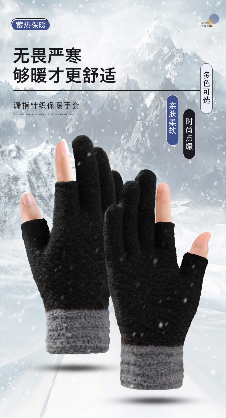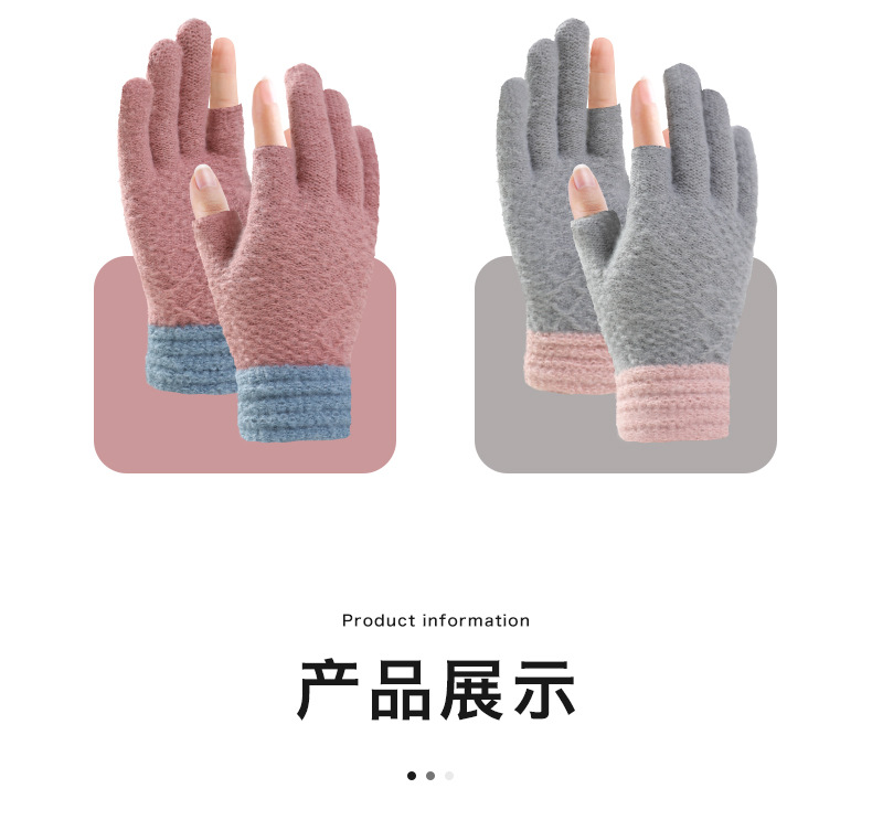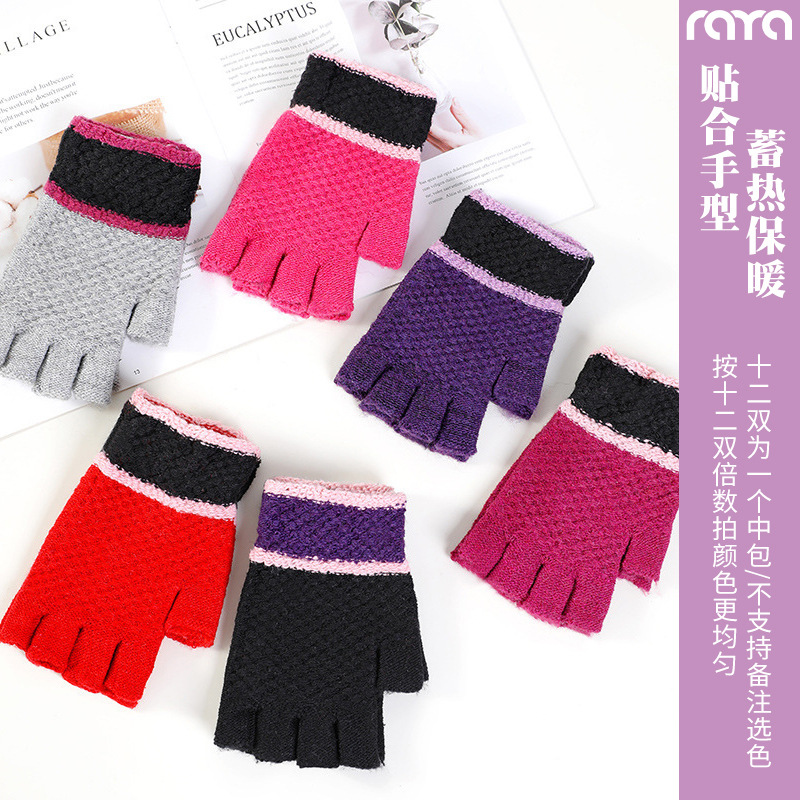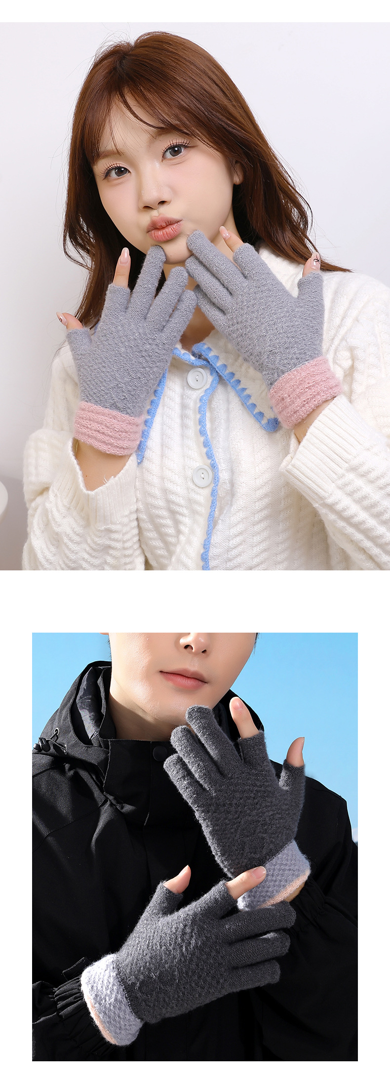 남성과 여성의 겨울 노출 두 손가락 장갑 새로운 사무실 쓰기 타이핑 노출 손가락 따뜻한 색상 매칭 니트 장갑스토어 가기