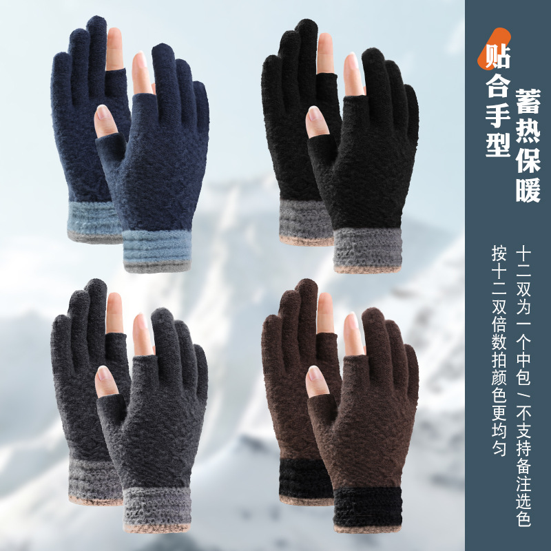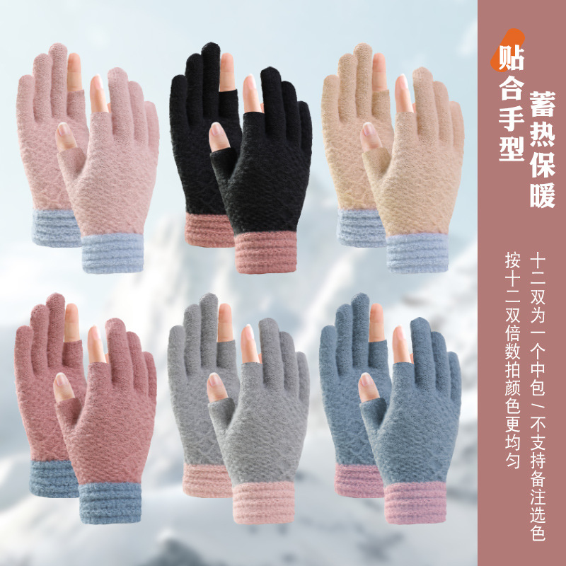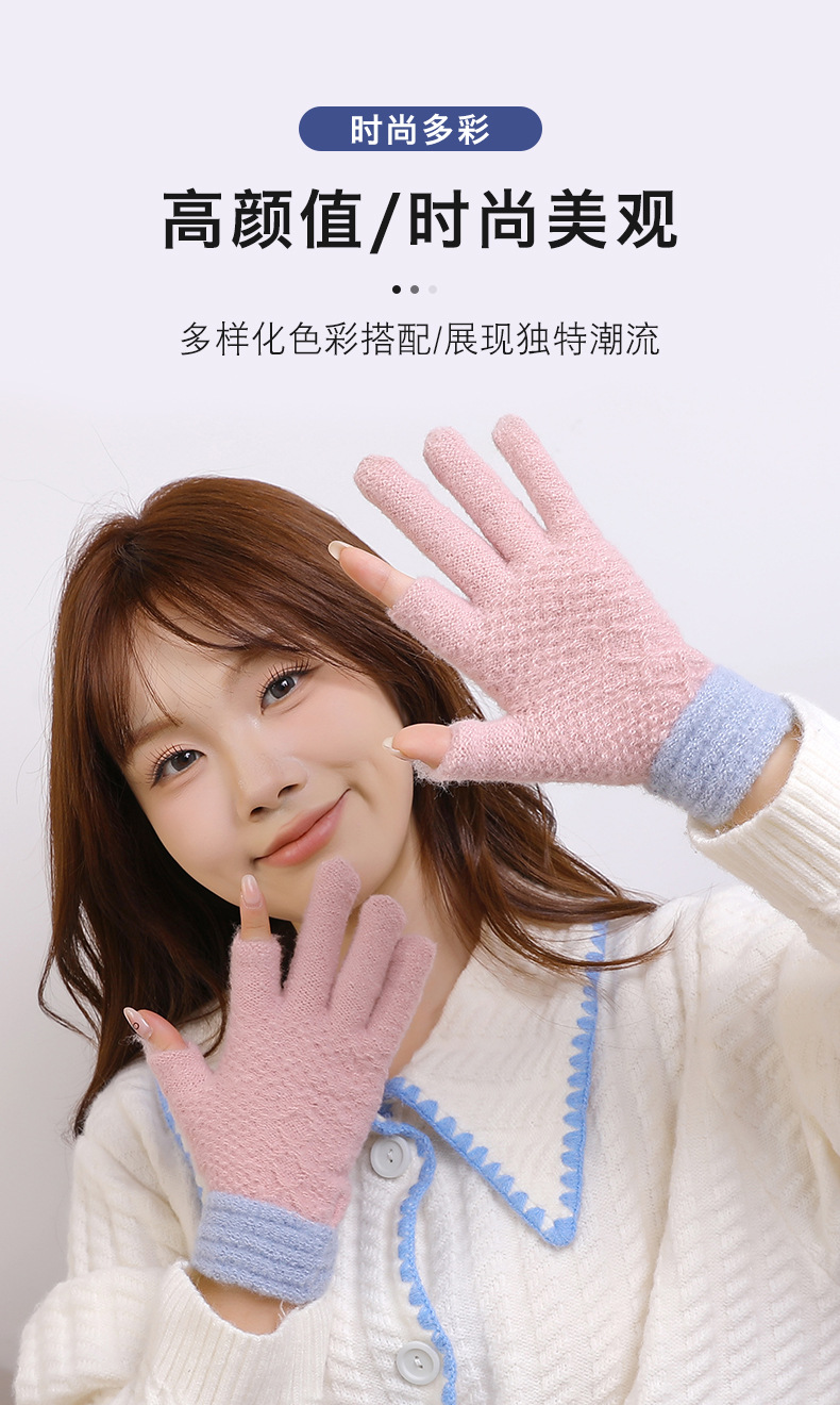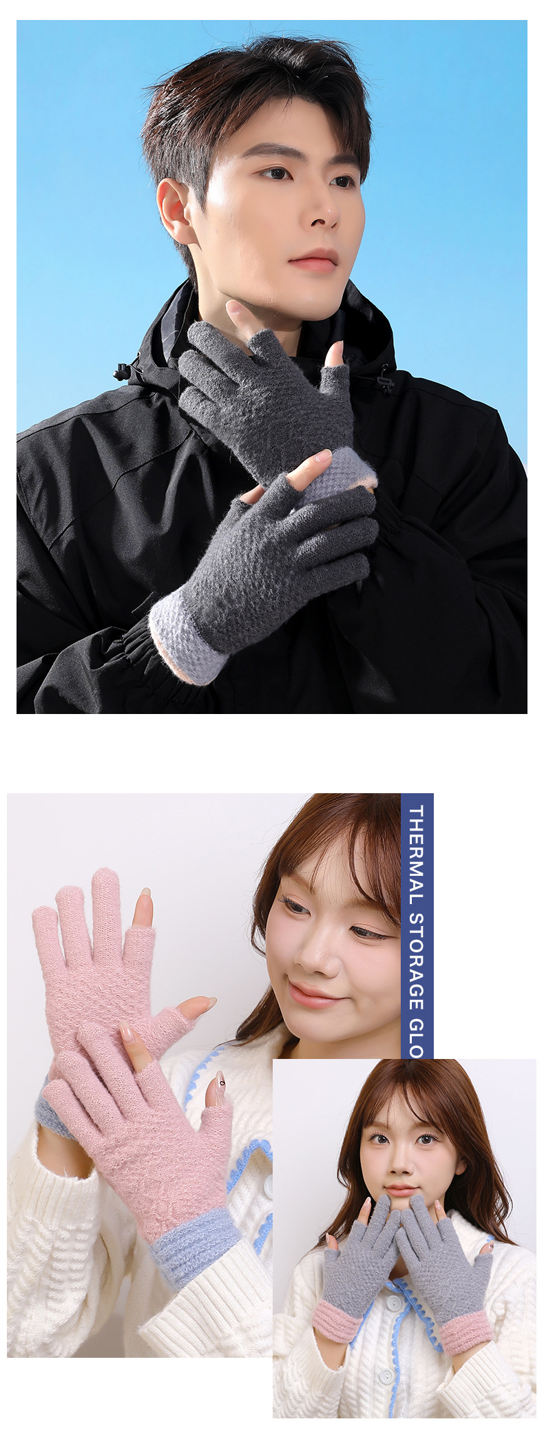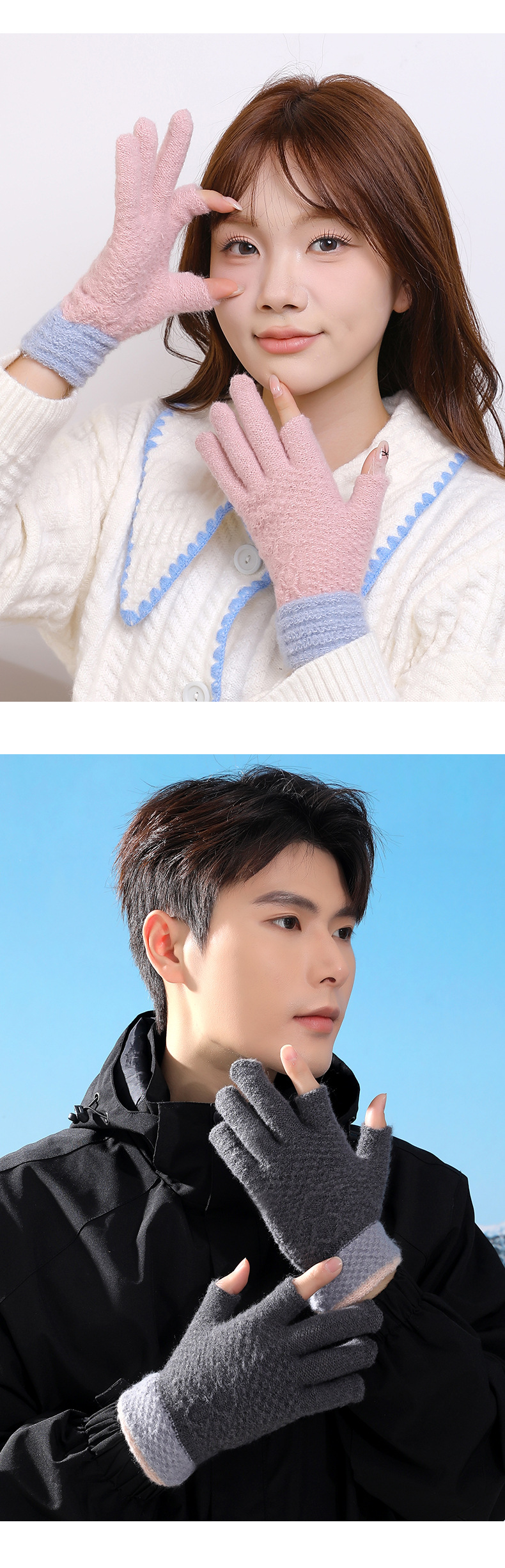 남성과 여성의 겨울 노출 두 손가락 장갑 새로운 사무실 쓰기 타이핑 노출 손가락 따뜻한 색상 매칭 니트 장갑스토어 가기
