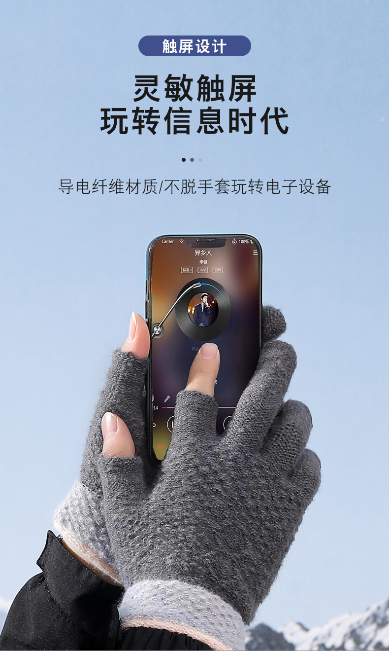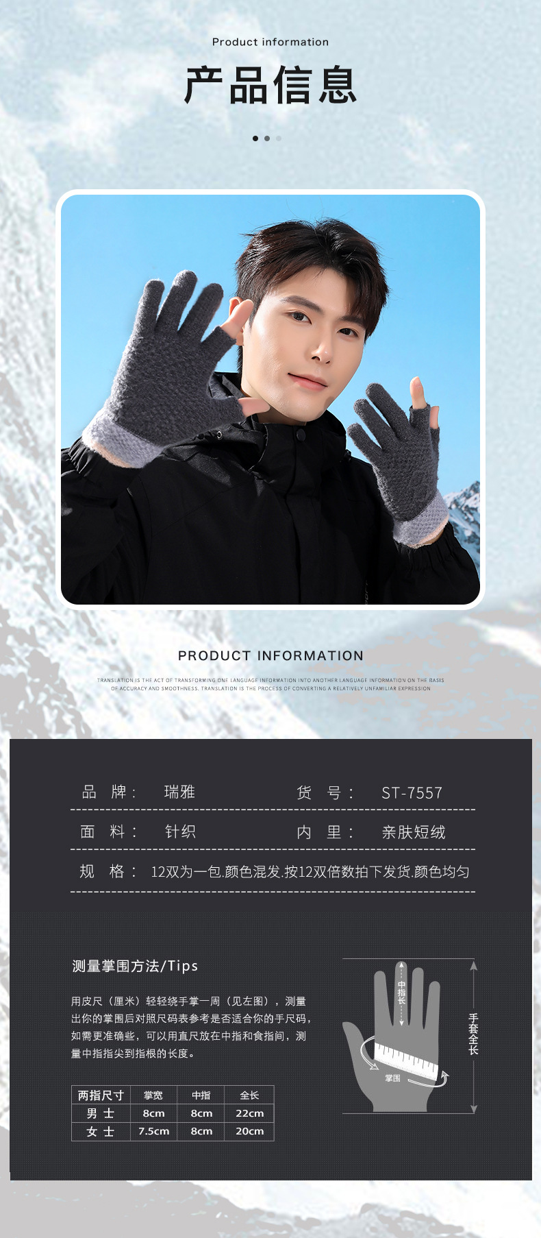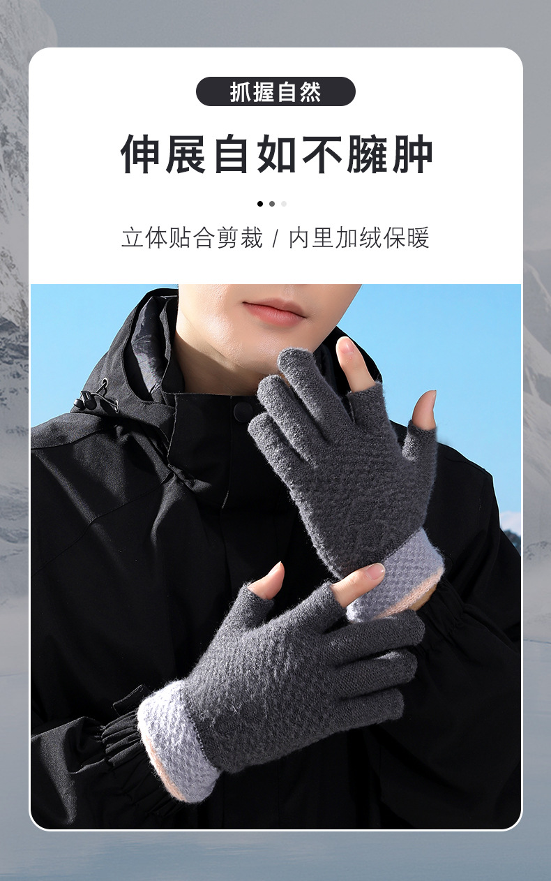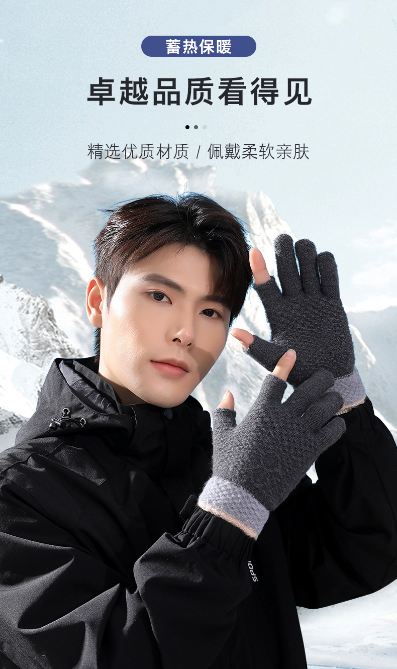 남성과 여성의 겨울 노출 두 손가락 장갑 새로운 사무실 쓰기 타이핑 노출 손가락 따뜻한 색상 매칭 니트 장갑스토어 가기