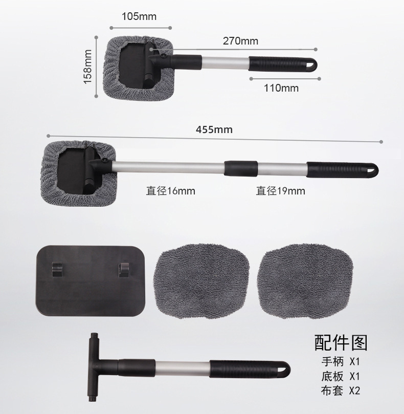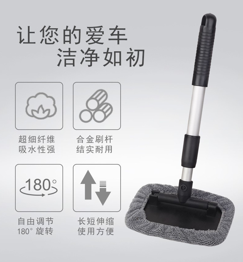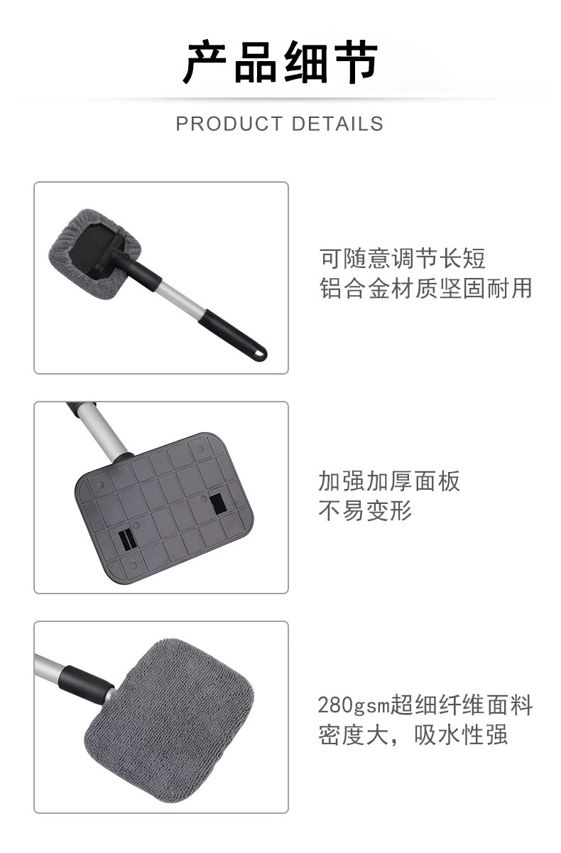 1、可伸缩铝合金杆,清洁范围大,可轻松擦洗车顶;