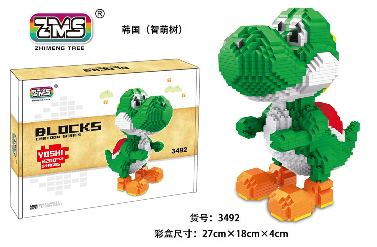 Zms Zhimeng 나무 다이아몬드 작은 입자 빌딩 블록 장난감 클래식 애니메이션 시리즈 3492-3493 공룡 쿠바