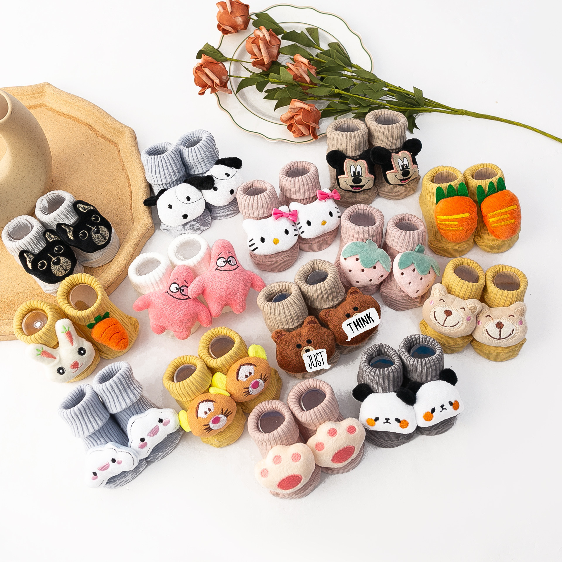 더블 바늘 인형 어린이 양말 봄 만화 인형 튜브 양말 아기 바닥 양말 제조 업체 도매