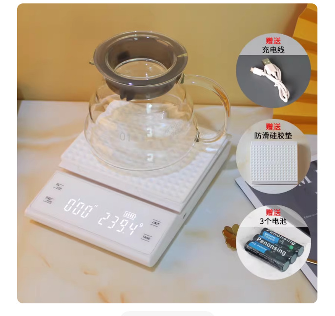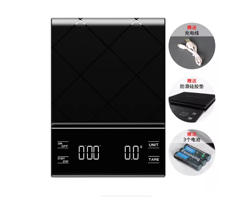 핸드드립 커피용 전자저울, 바 카운터용 이탈리아 싱글 오리진 식품 저울, 타이머 기능, LED 충전식, 3000g스토어 가기