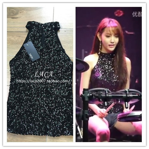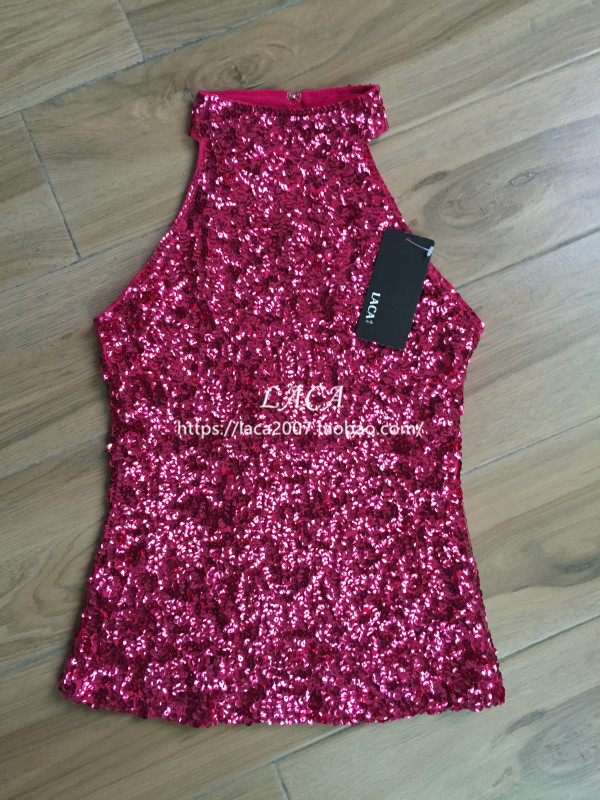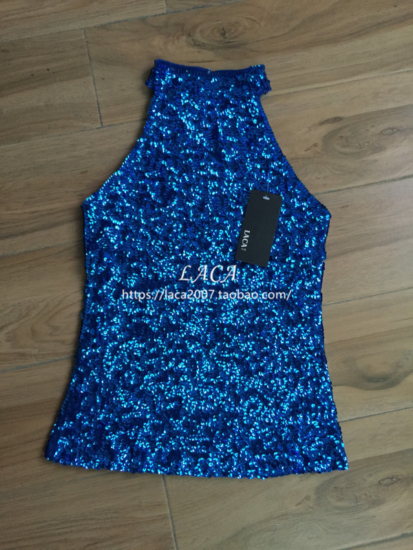 유럽과 미국 여성의 목 민소매 조끼 바 DS 하이 칼라 스팽글 하의 셔츠 섹시한 최고 성능스토어 가기