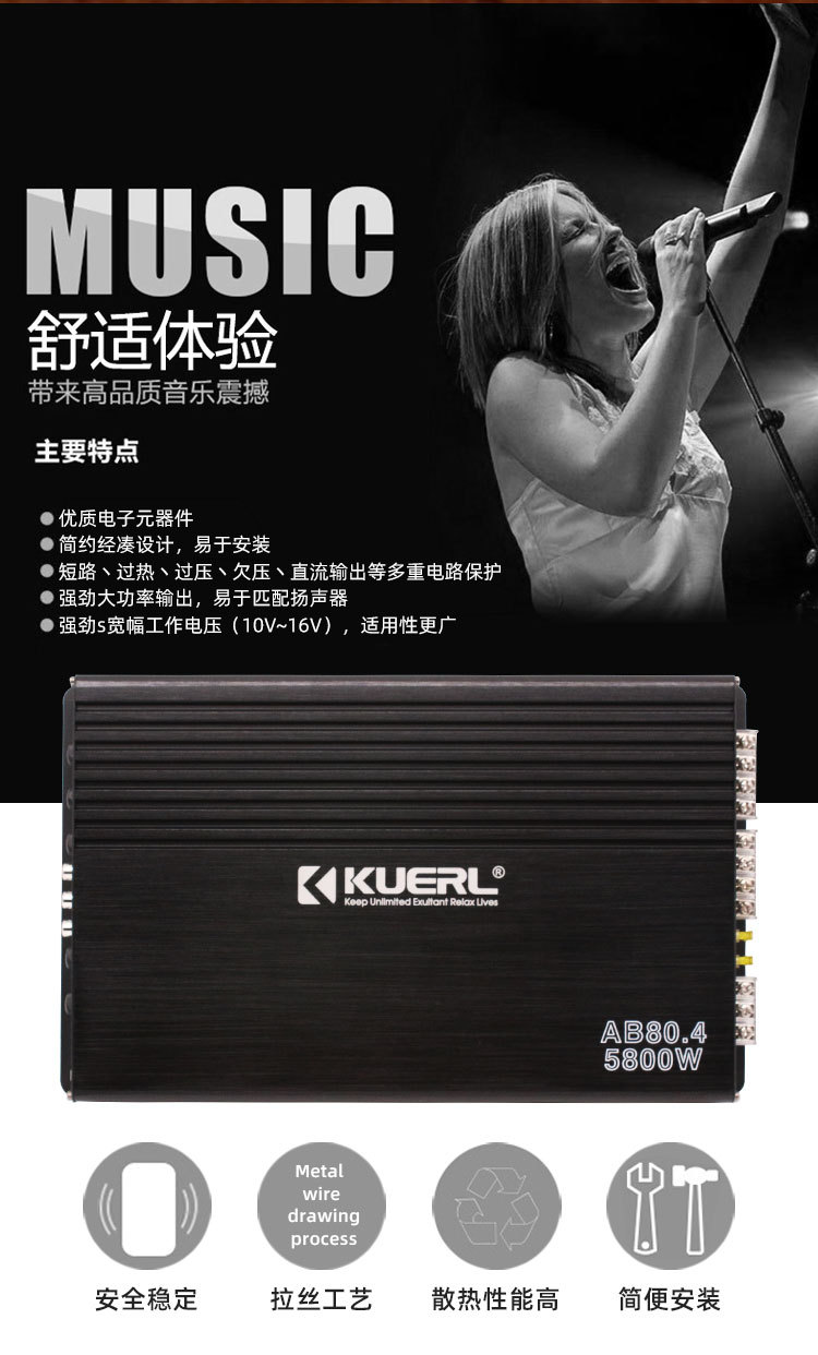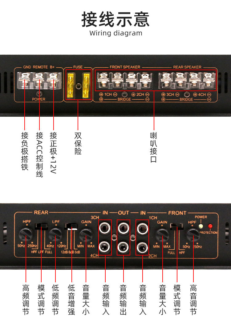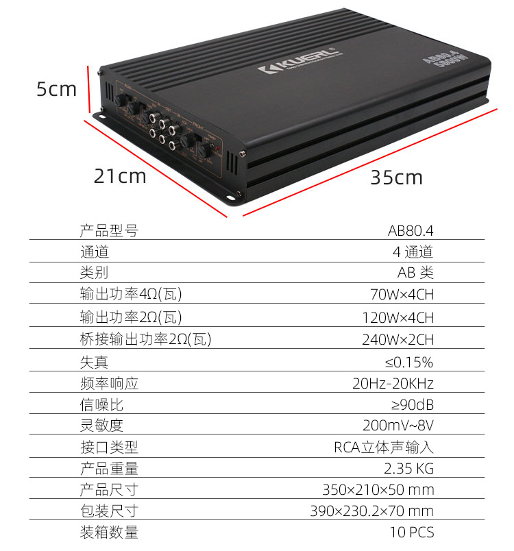 공장 도매 새로운 AB 고출력 4*100W 오디오 업그레이드 및 수정 12V 자동차 4 방향 증폭기