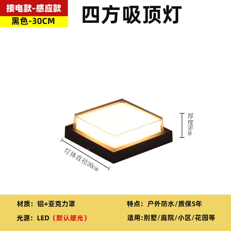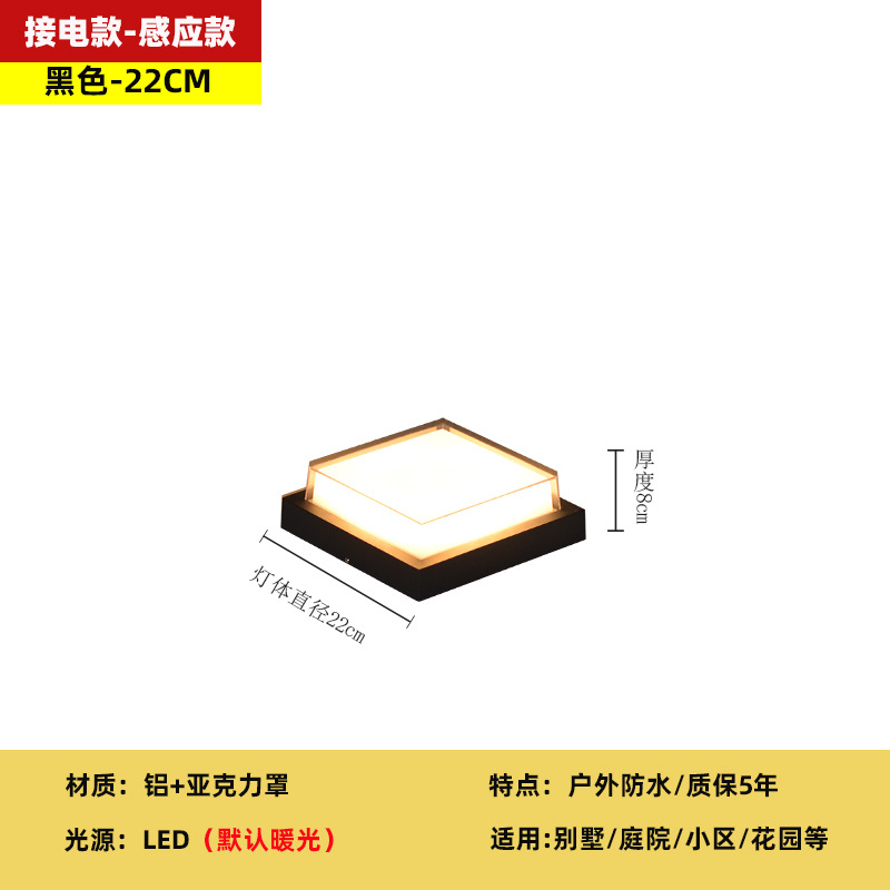 • 22cm 사각 LED 천장등 인체 감지 블랙