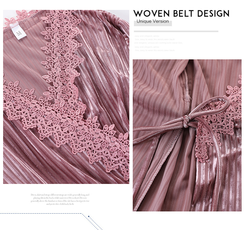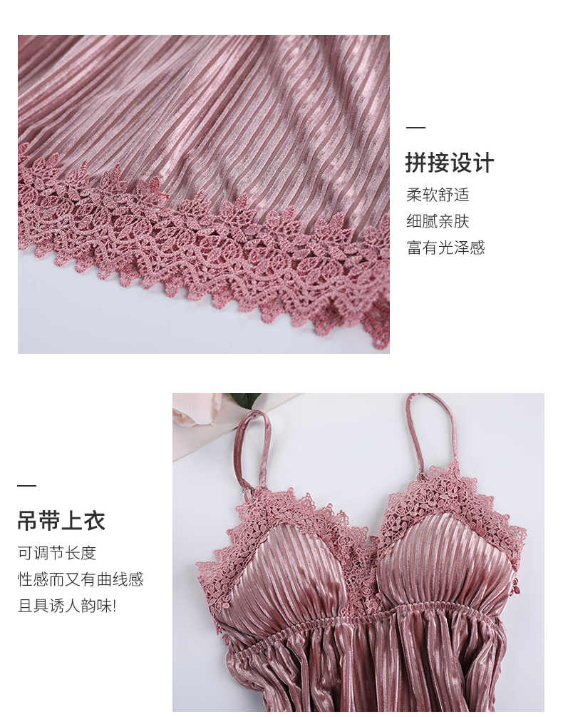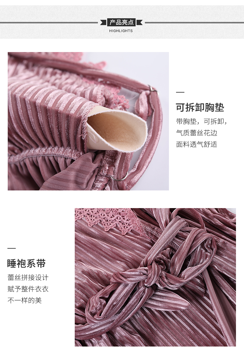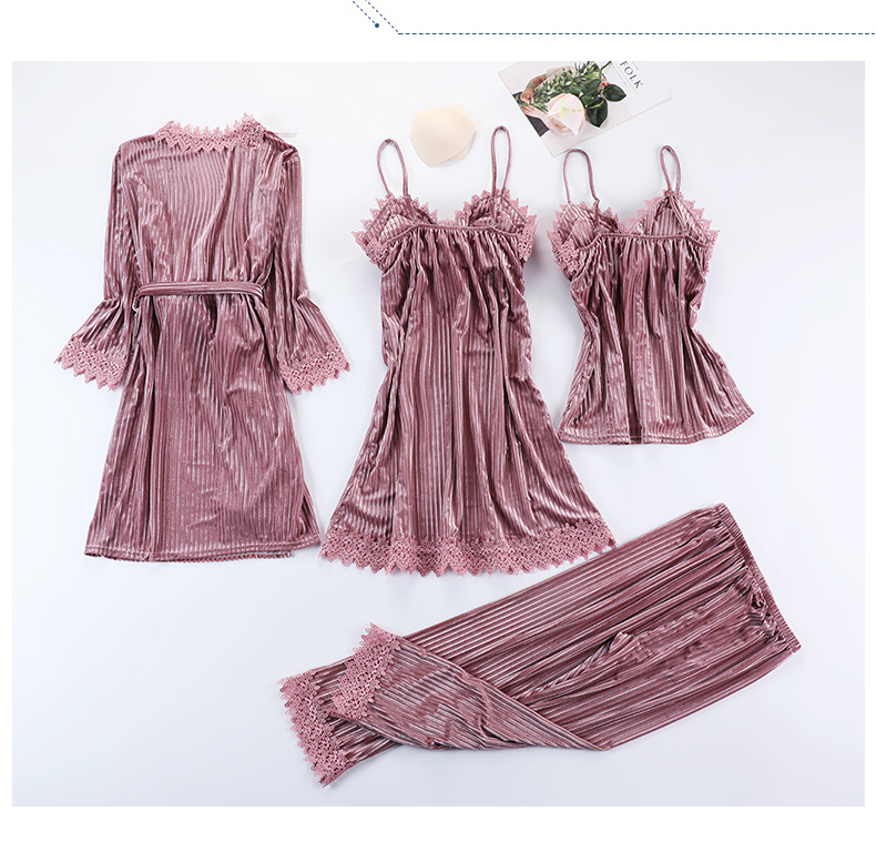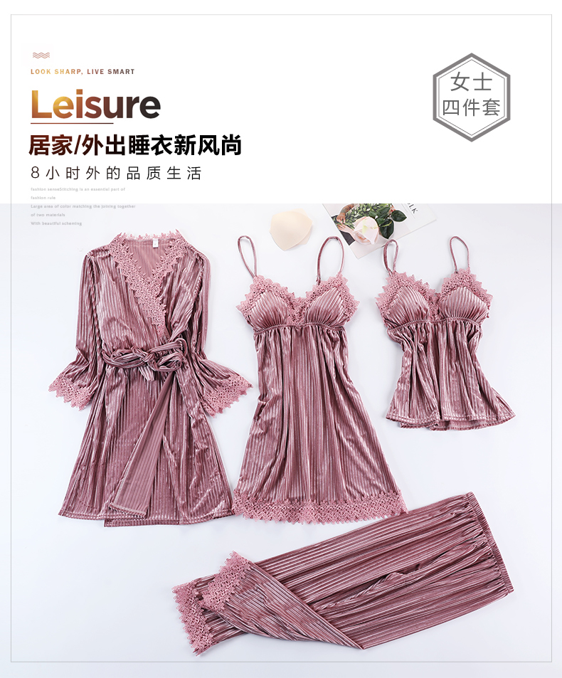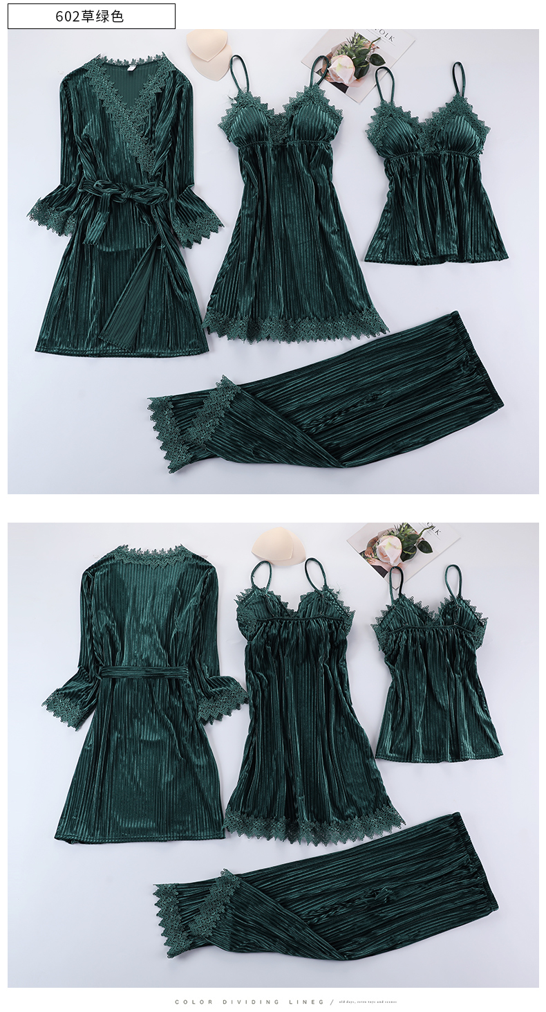 골든 벨벳 잠옷 여자의 봄과 가을 섹시한 잠옷 슬링 벨트 가슴 패드 4 종 세트 잠옷 겨울 가정복 세트