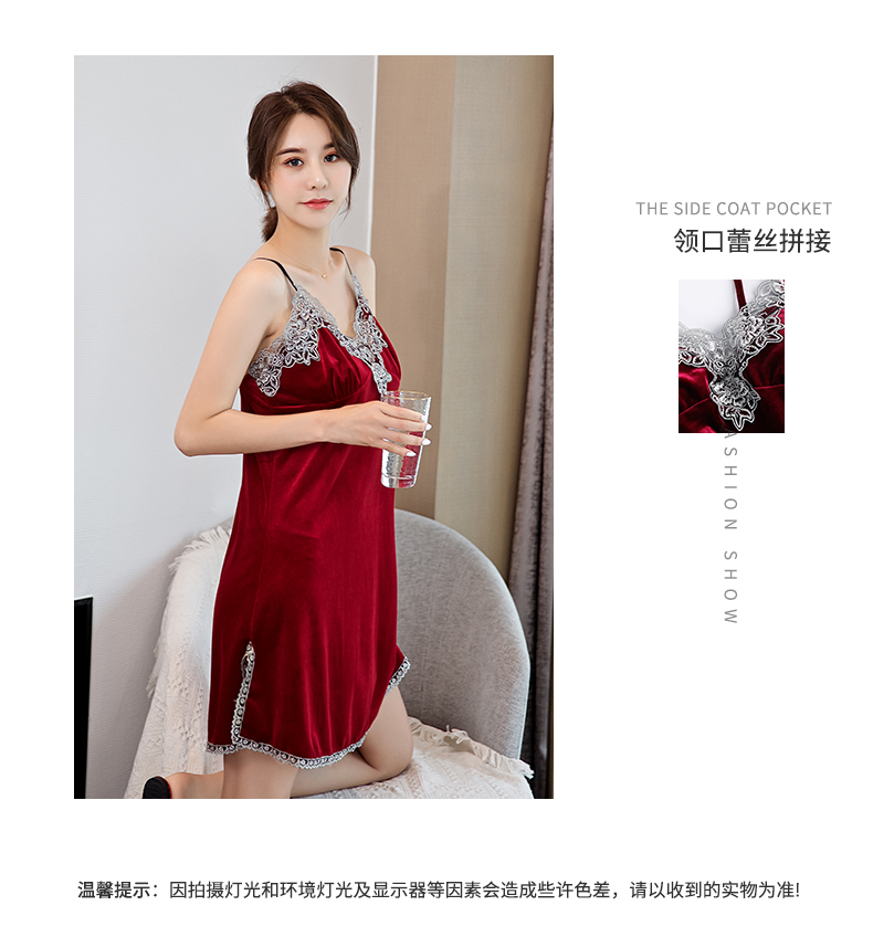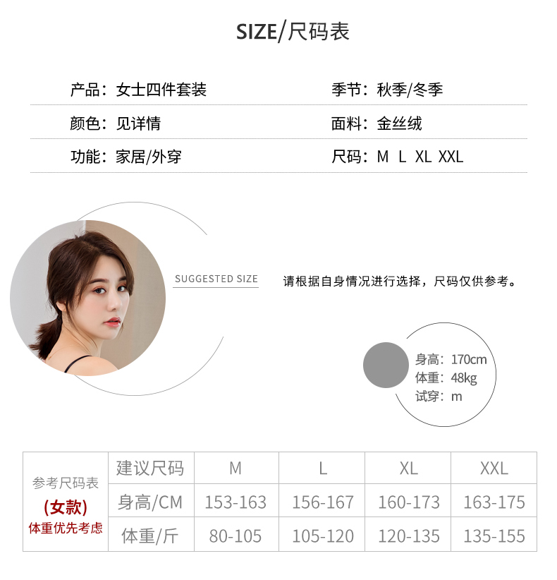 골든 벨벳 잠옷 여자의 봄 가을과 겨울 섹시한 잠옷 슬링 스트랩 가슴 패드 레이스 여자의 가정 옷 4 피스 세트스토어 가기